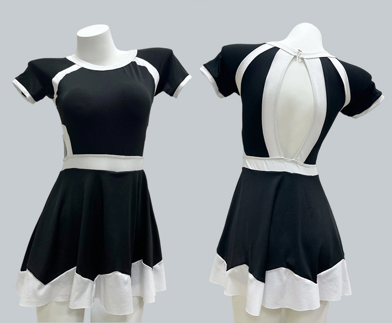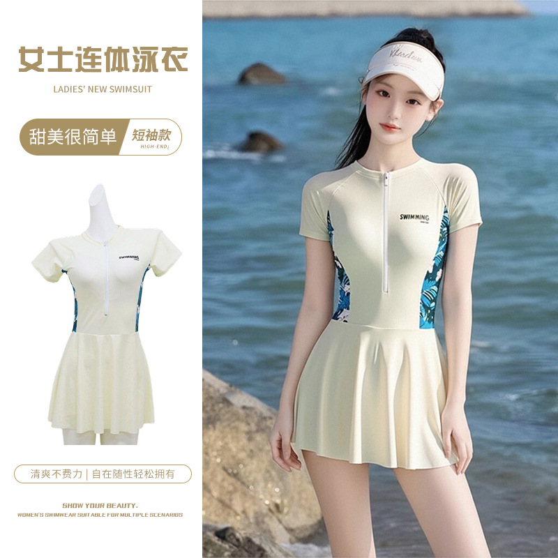 女性用の新しいワンピース水着、ハイエンド、シンプル、無地、甘いスカートスタイル、コンサバティブ、スリム、お腹カバー、痩身休暇水着