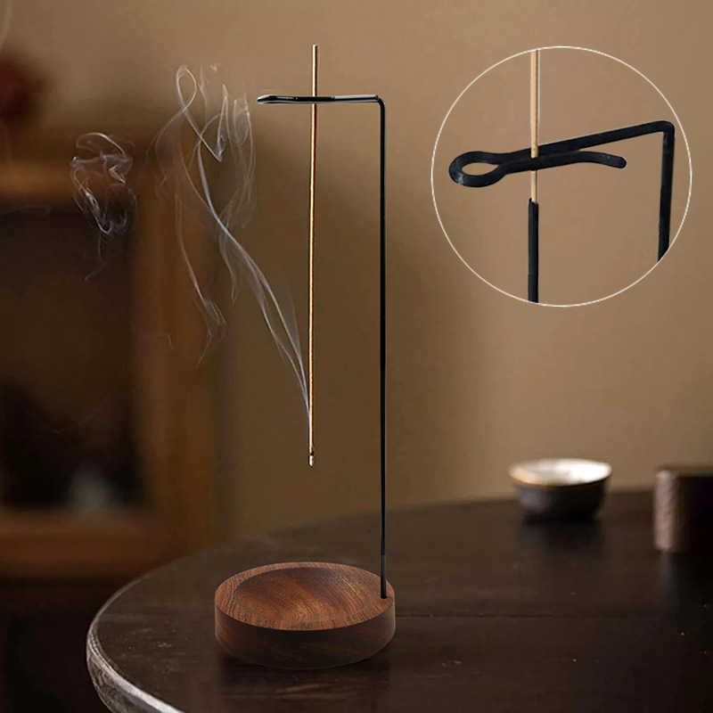 【クロスボーダーの人気】鉄芸実木香炉竹串香挿禅意室内の家庭装飾品が香器を逆さまにかける