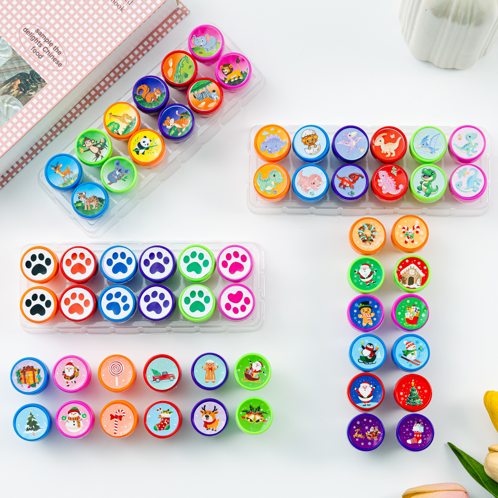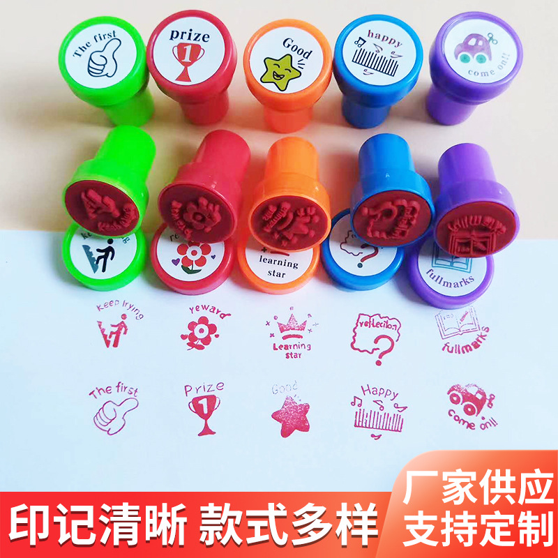 漫画のおもちゃの印鑑幼稚園の教師はおもちゃの円形の子供の益智のプラスチックの印鑑の多種の図案を奨励します。