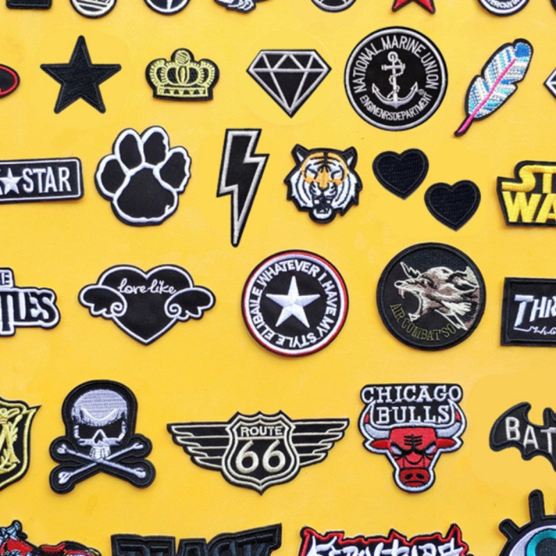自己接着パッチは、黒の刺繍バッジの布を縫うことなくダウンジャケットの服のズボンのシャツを貼り付けます。