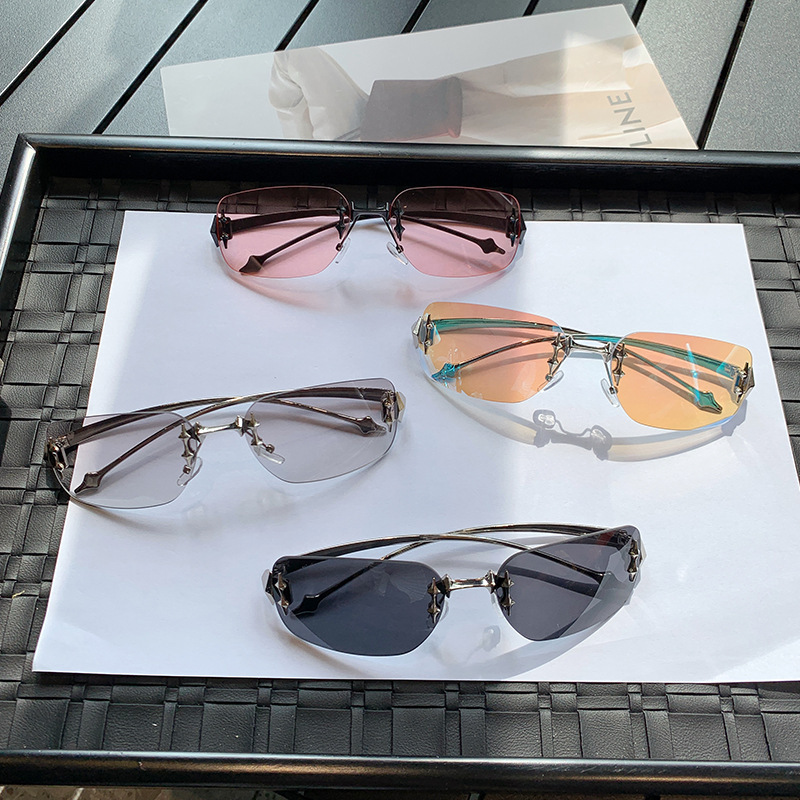 2024 ヨーロッパとアメリカのホットガールフレームレスカットエッジサングラスファッションハイエンドパーソナライズされたメタルメガネスターサングラス女性のための