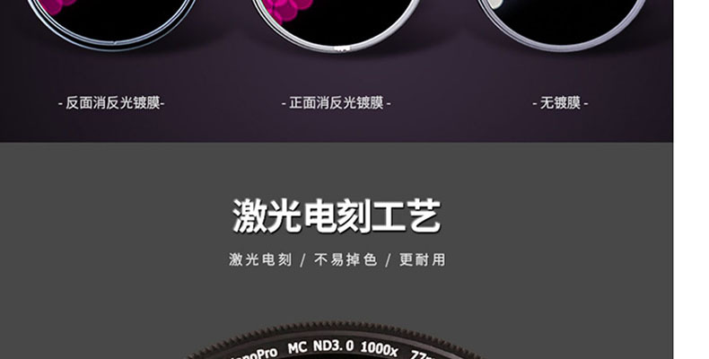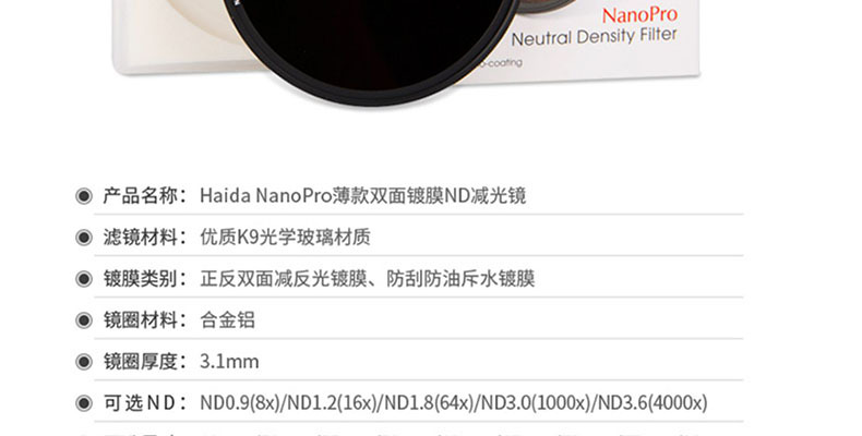 パッケージリスト NanoPro 両面コーティング減光フィルター ND3.0 1000x