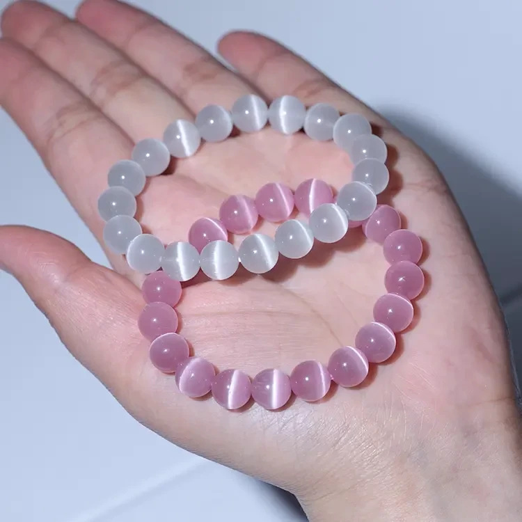 露店ソース工場6mm 8mm 10mm天然猫眼石起爆女ブレスレットデザイン多色個性手串