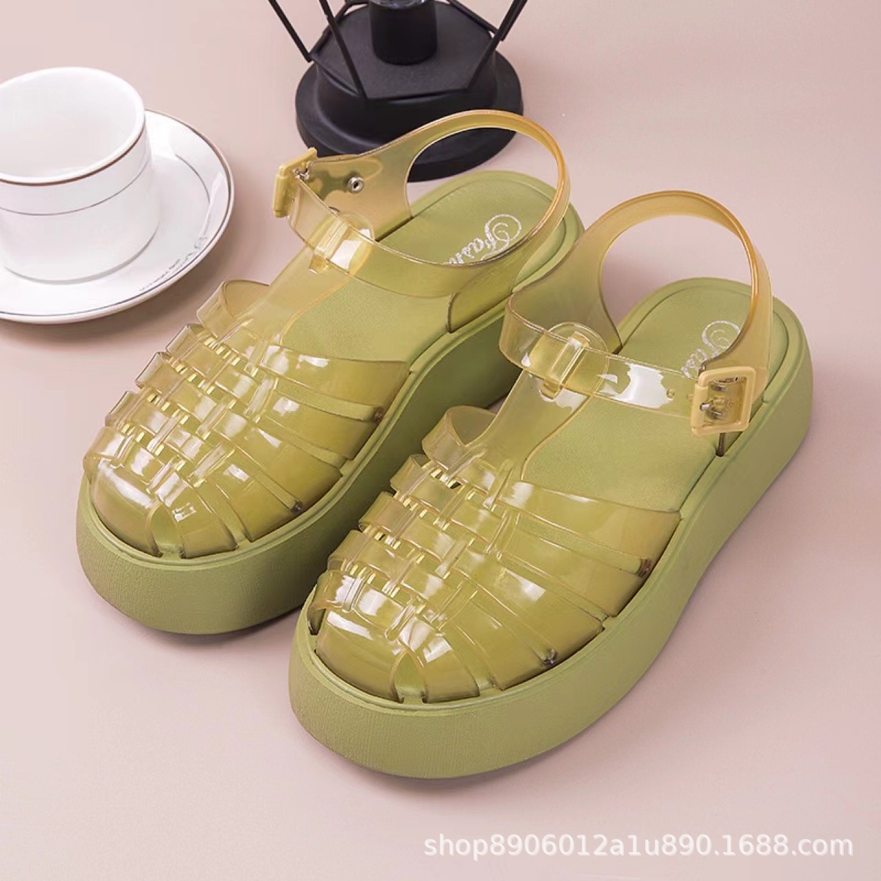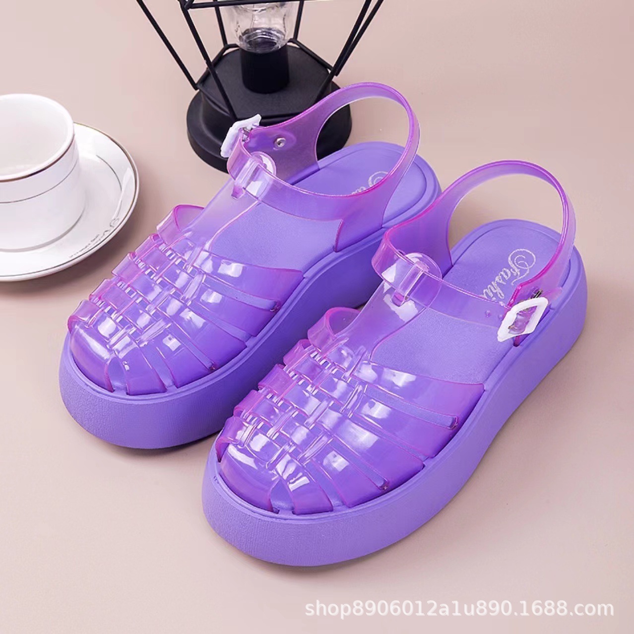 外国貿易のファッション水晶のサンダルの女性の夏の韓国版の学生は厚い底の滑り止めの包頭の通気性のローマのゼリーの靴を着ます。