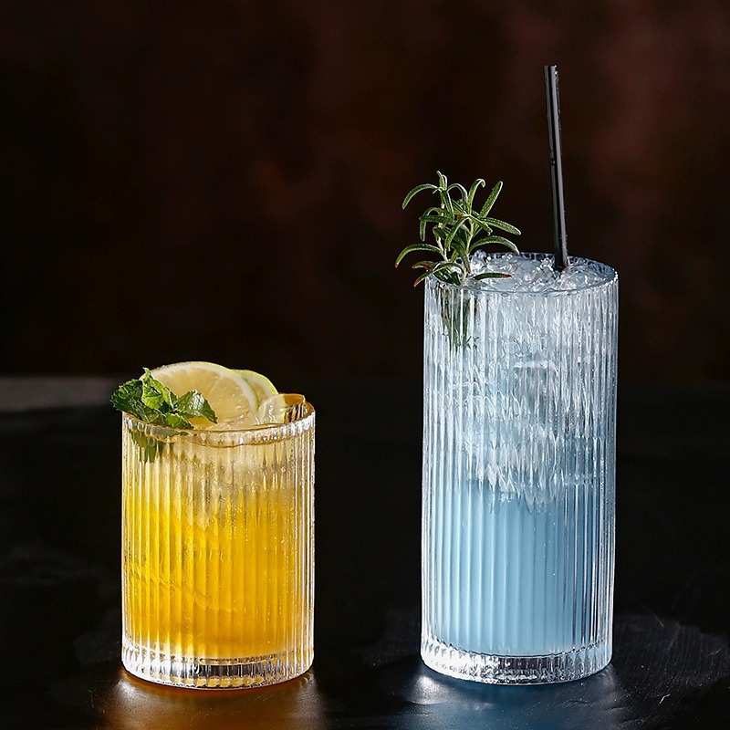 高脚果汁玻璃杯家用高颜值树纹直筒创意透明果茶气泡水杯鸡尾酒杯