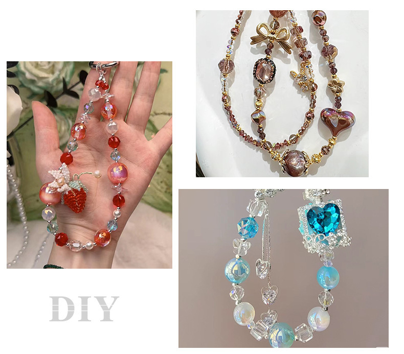 新款重工蝴蝶串珠子时尚花朵爪链亚克力圆珠手机链串珠笔散珠配件