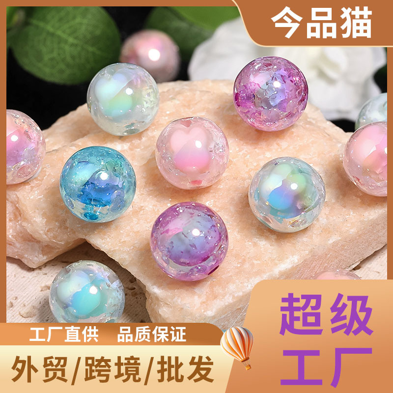 10mm爆花瑠璃珠手串diy部品アクセサリービーズ散珠ブレスレットネックレス材料ビーズ2025新