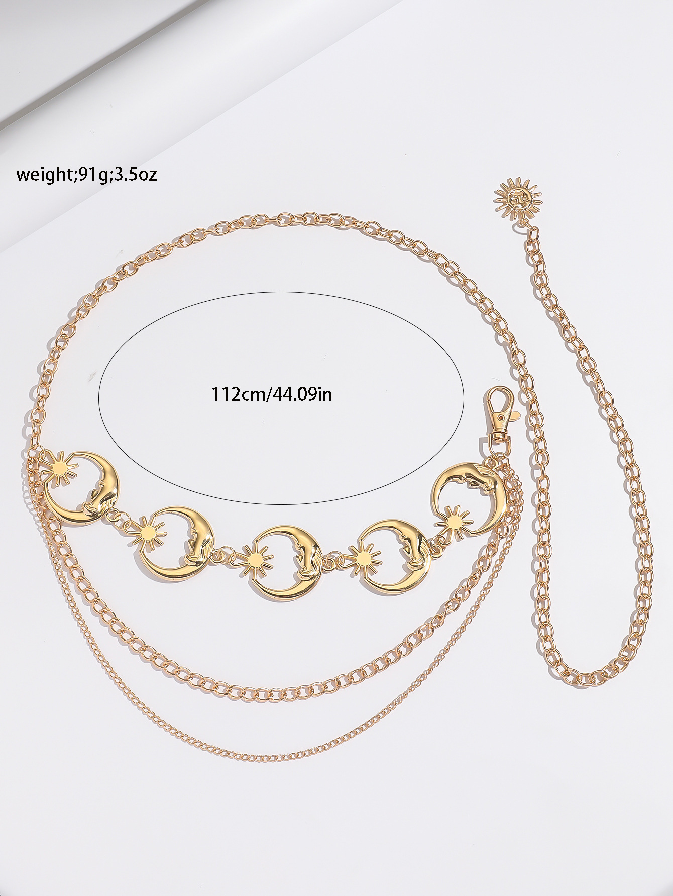 2 ヨーロッパとアメリカのクロスボーダームーンスターペンダントウエストチェーン女性のヒップホップレトロメタルベルトボディチェーンアクセサリー在庫卸売