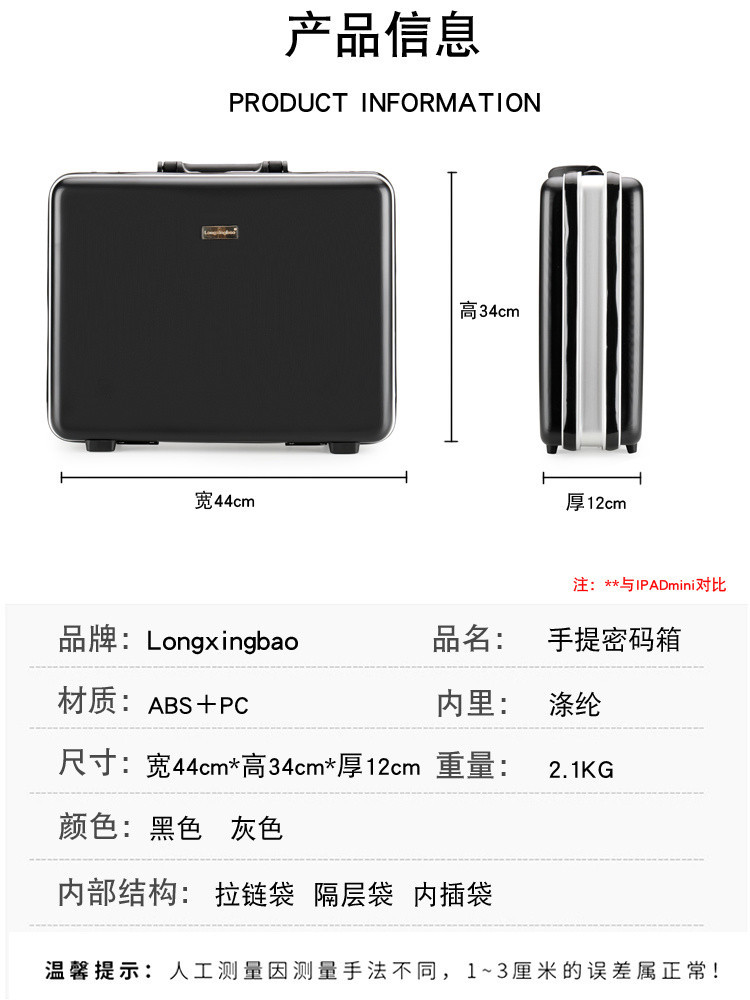 Q6V硬壳高级密码箱商务公文箱旅行箱便携仪器收纳箱