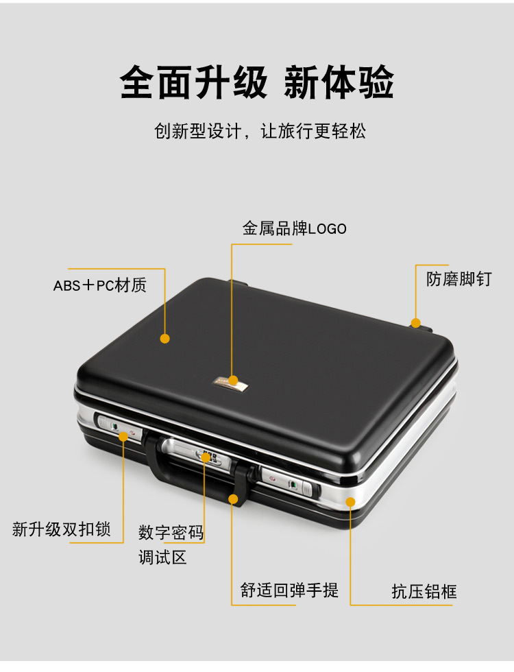 手提密码箱商务铝合金公文箱工具仪器商务箱包资料箱旅行登黑色
