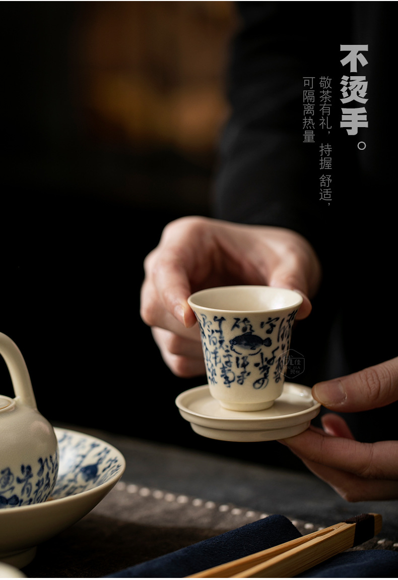 敦煌千仏ティーカップコースターセット家庭用カンフーセラミックティーカップハイエンドマスターカップ香りカップシングルカップ
