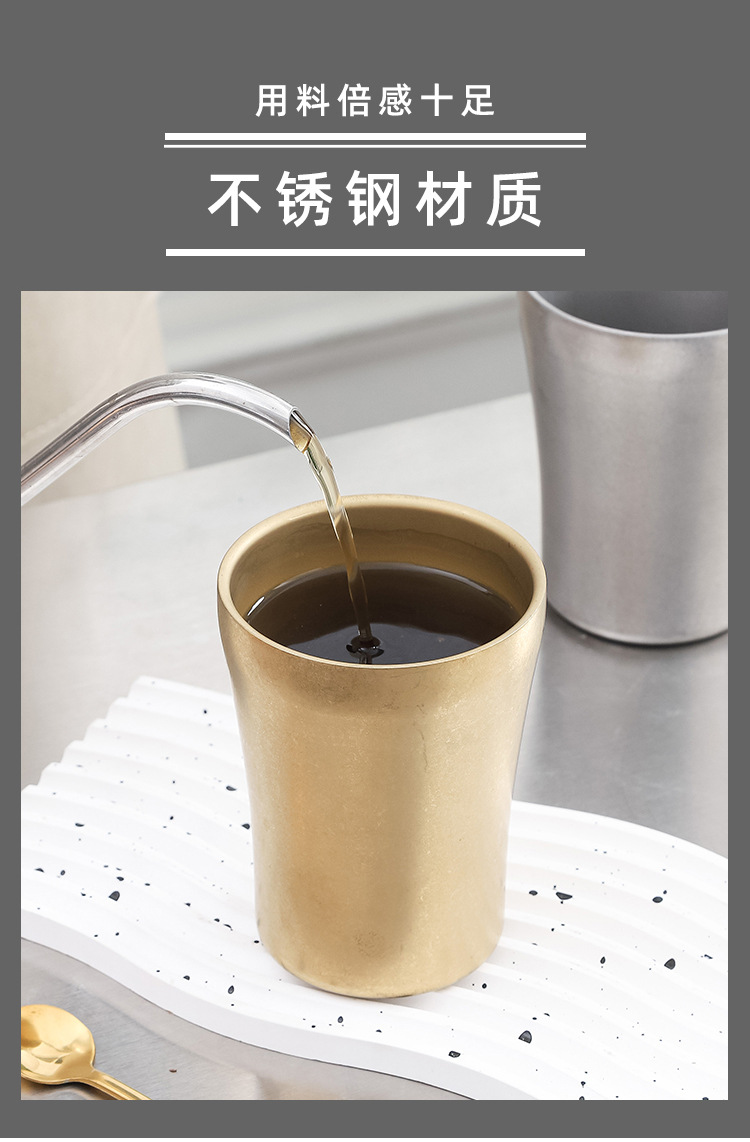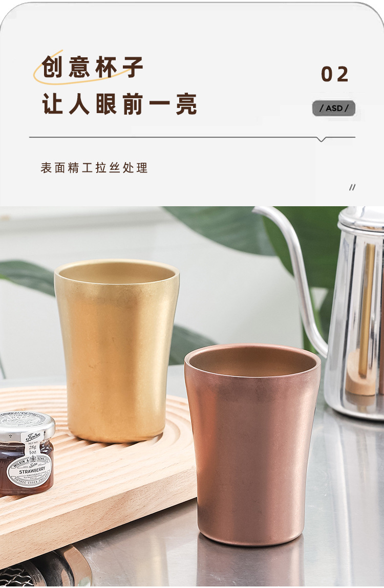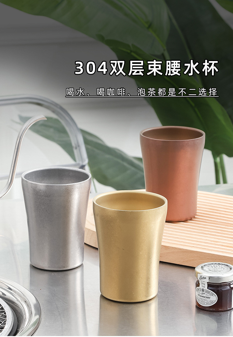 レトロなスタイルの 304 ステンレス鋼カップ二層古いゴールデンドリンクカップレストランバーベキューショップティーカップカスタムロゴ