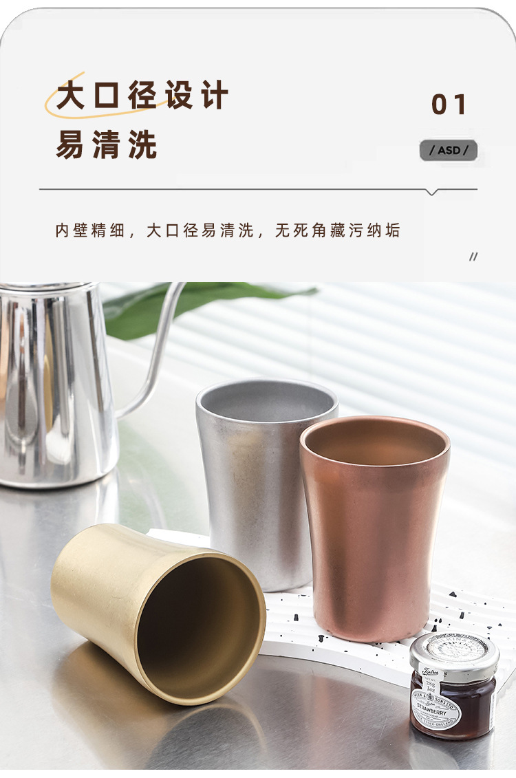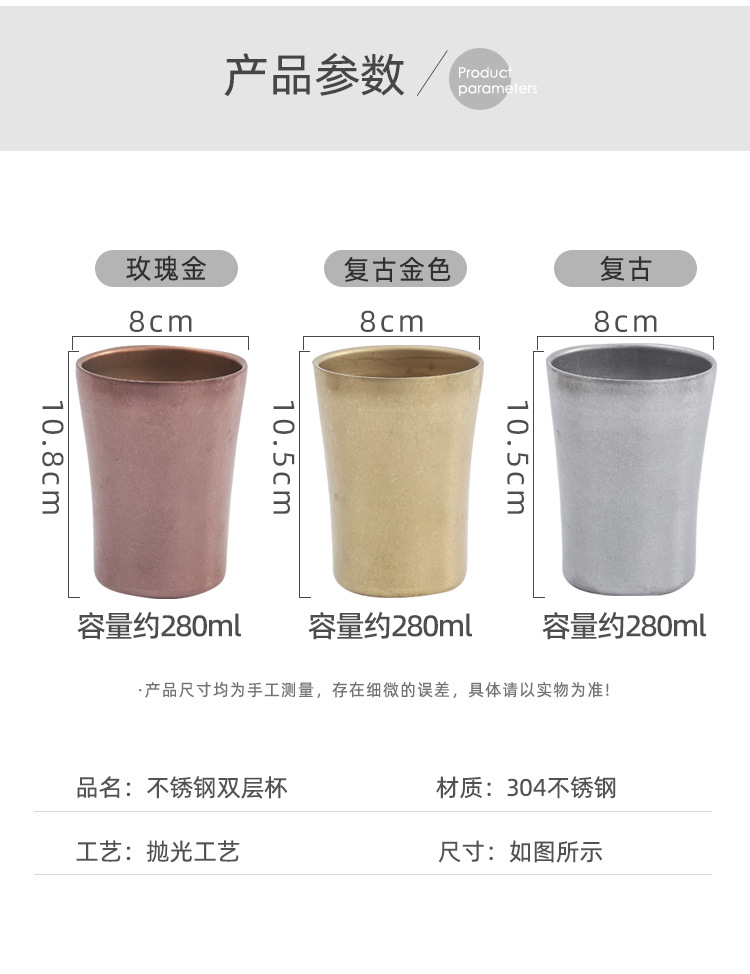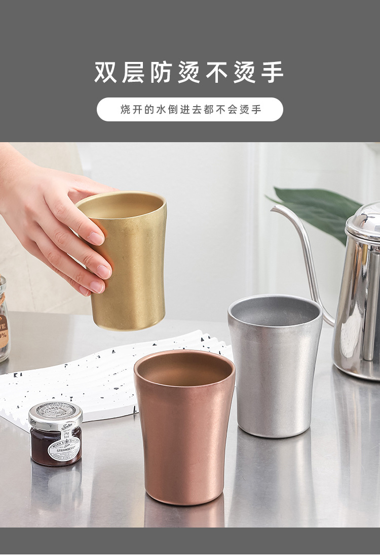 レトロな古いコップ304ステンレス二重カップジュースカップ商用ビールグラス焼肉店ピクチャーカップ