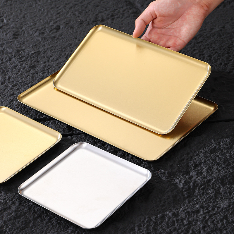 ステンレス鋼長方形プレートコーヒートレイスナックケーキデザートプレートバーベキュープレートバーベキューライトプレートカスタムパターン