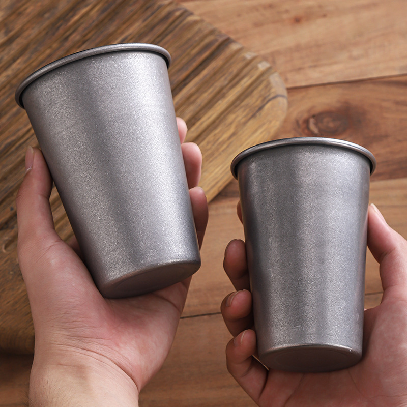 レトロ304ステンレスコップ単層冷たいコップは古いお茶のコップを作ってキャンプ風ビールマグをカスタマイズします。