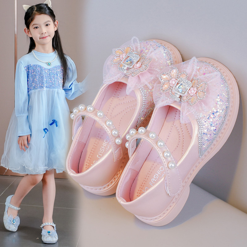 女の子の靴の子供の王女の水晶の靴の春秋2025の新型の柔らかい底の女の子の靴のドリルの女の子は靴を演出します。