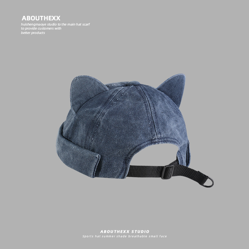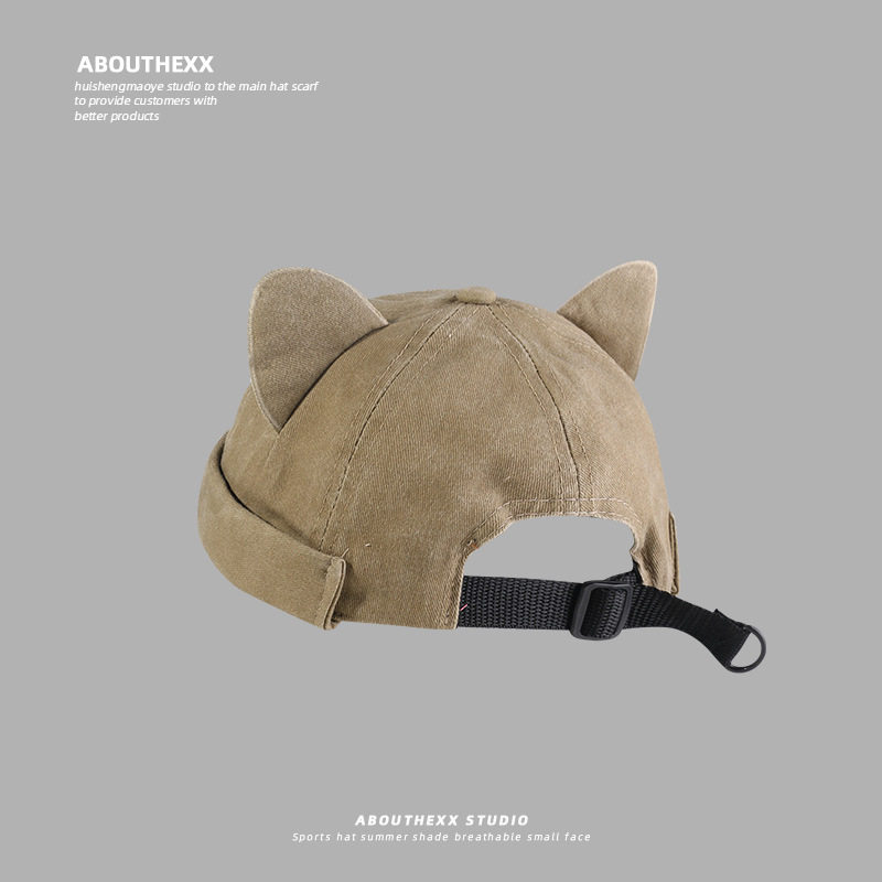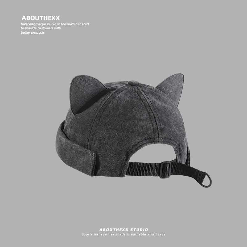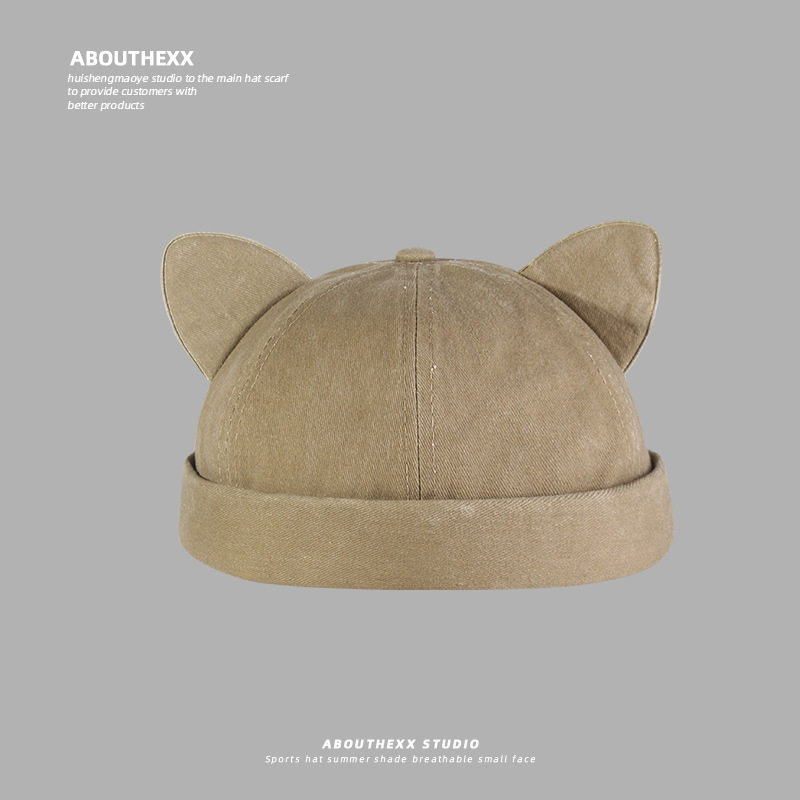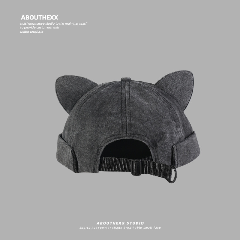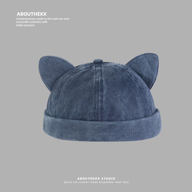 跨境爆款帽子女可爱猫耳朵无檐地主帽水洗做旧瓜皮帽雅痞帽子男潮