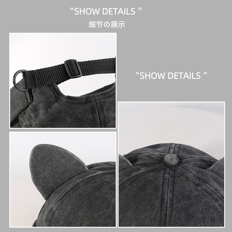 かわいい猫耳つばなし地主帽子夏のファッション多用途パーソナライズされたメロンスキン帽子ウォッシュ加工古い地主帽子女性用