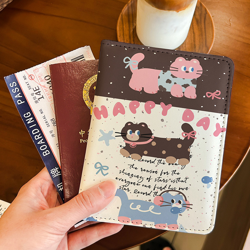 小清新ケイティ猫パスポート保護カバー多機能カードケース海外旅行携帯収納
