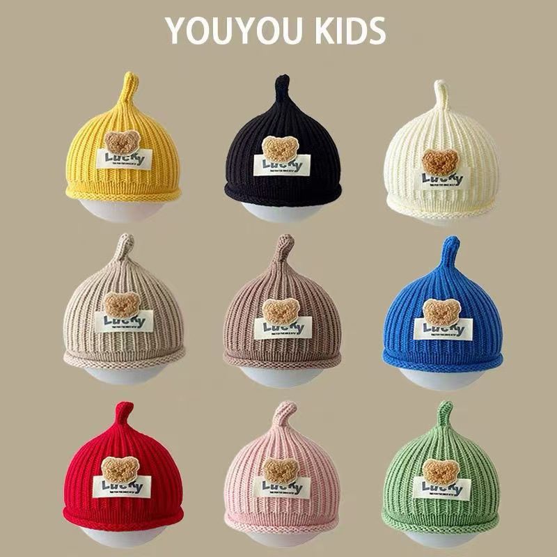 韩版帽子超萌宝宝毛线帽男女婴儿可爱帽秋冬季保暖揪揪针织套头帽