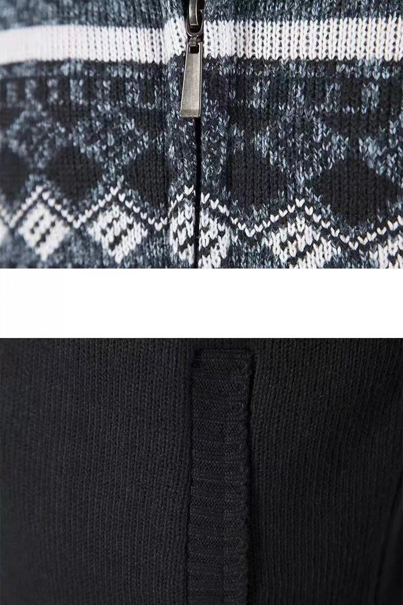 跨境专供男士加绒加厚针织衫冬季新款立领宽松拼色开衫毛衣批发男