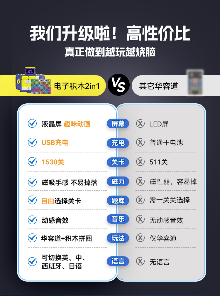 [華龍島電子積み木 2-in-1] プリンセスピンク,[Huarongdao 電子ビルディングブロック 2 in 1] ナイトブルー,【華龍島電子積み木】ナイトブルー
