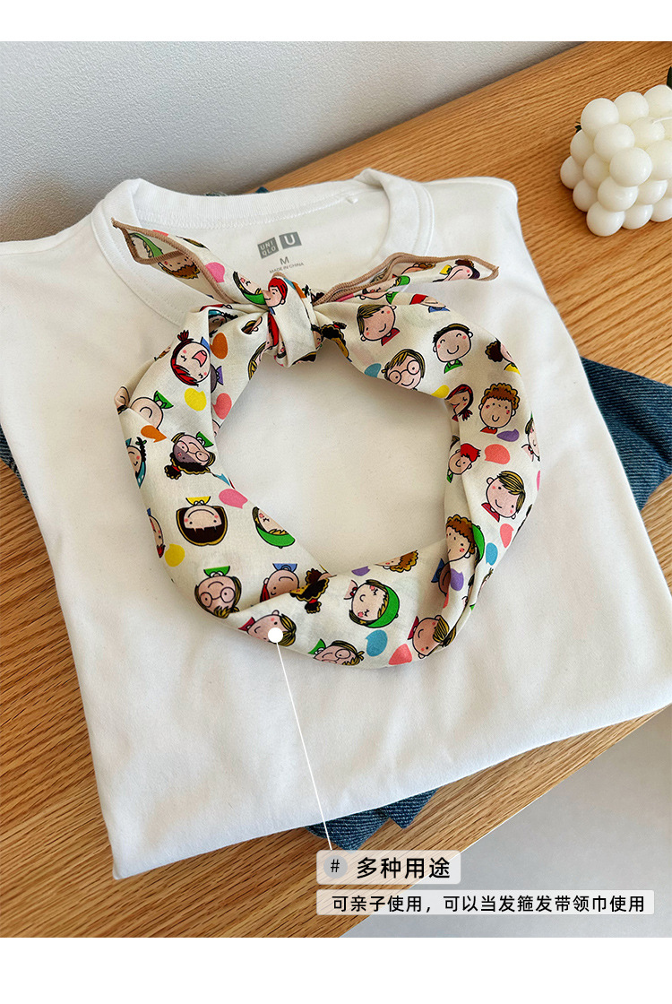 綿 100% 韓国漫画アバター小さな正方形ターバンシルクスカーフ女性のための春と秋のネックプロテクター親子スカーフ装飾