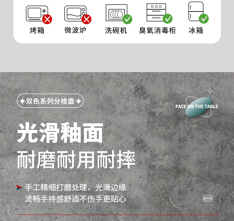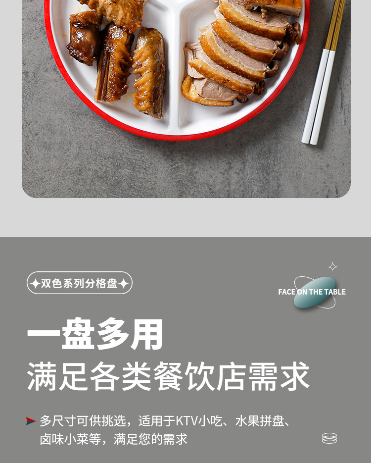 テーブルメラミン食器プレート、業務用マルチコンパートメントディナープレート、レストランホテル模造磁器大皿、ファーストフードプレート