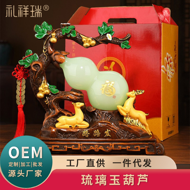 招才瑠璃玉瓢箪が開業して新居に引っ越してリビングの玄関の酒棚の装飾品を飾って友達にプレゼントします。