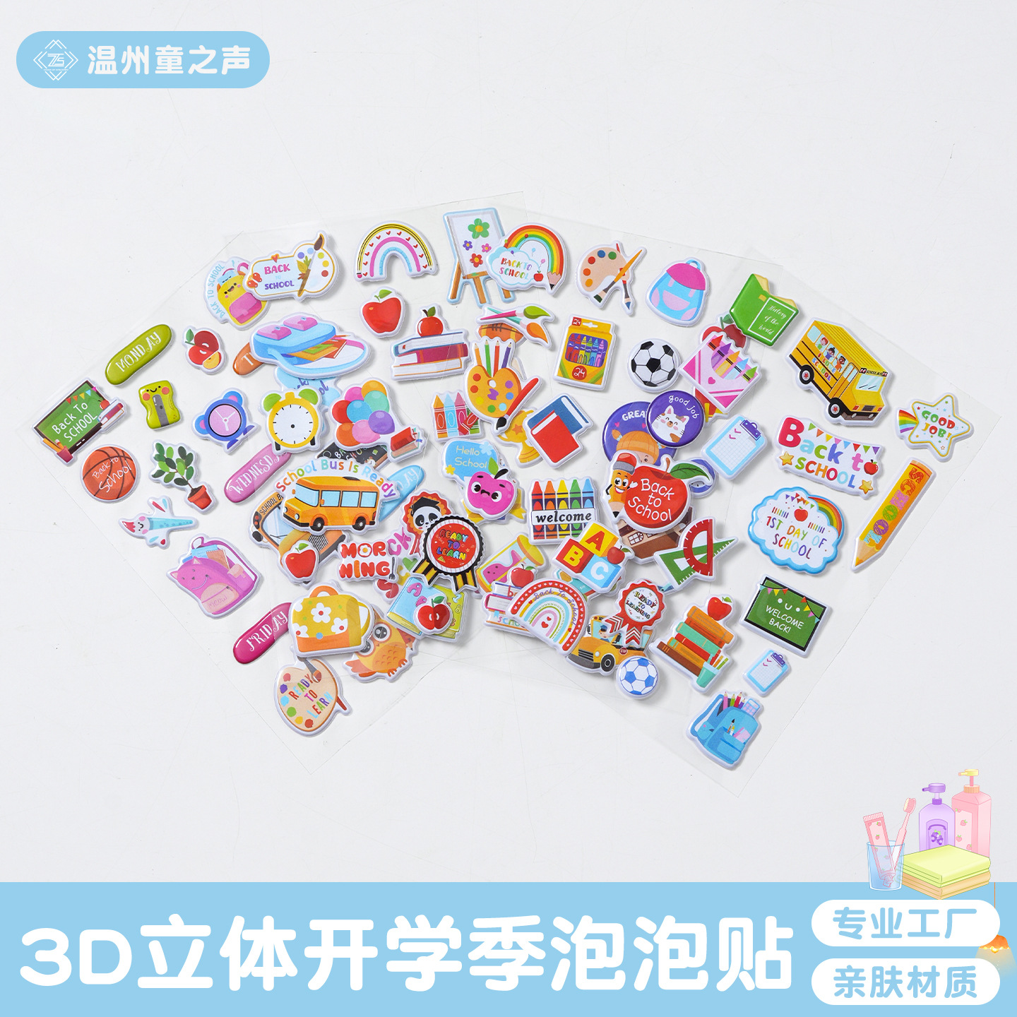 教育季立体贴纸童趣积木玩具笔尺子卡通创意手账3d泡泡贴跨境新品