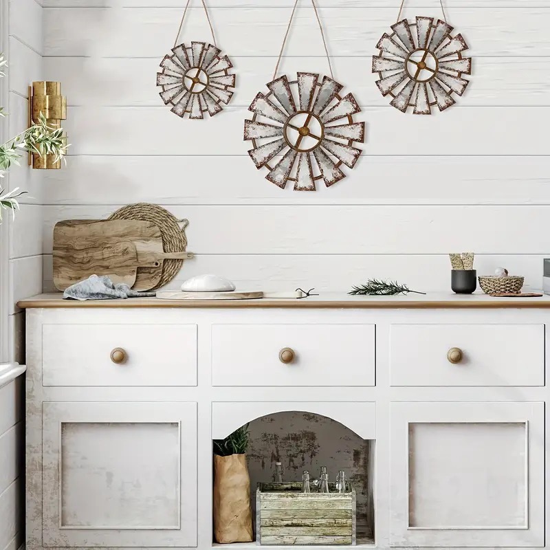 国境を越えた人気のボヘミアン木製風車の壁装飾キッチン、リビングルーム、寝室の壁装飾3点セット