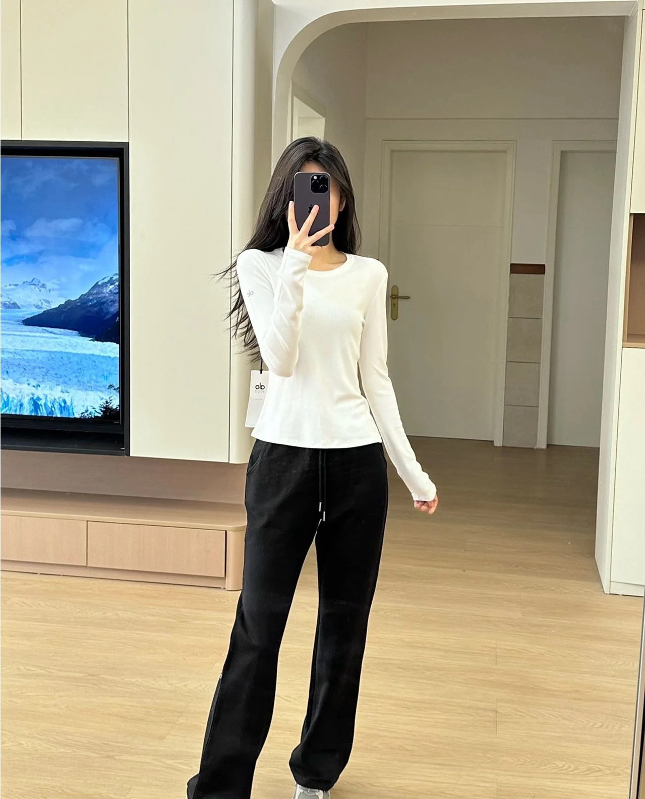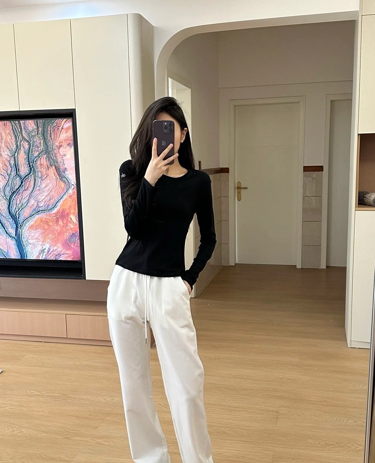 alo织带字母阔腿裤女士黑白灰三色早秋款慵懒风修饰腿型时尚