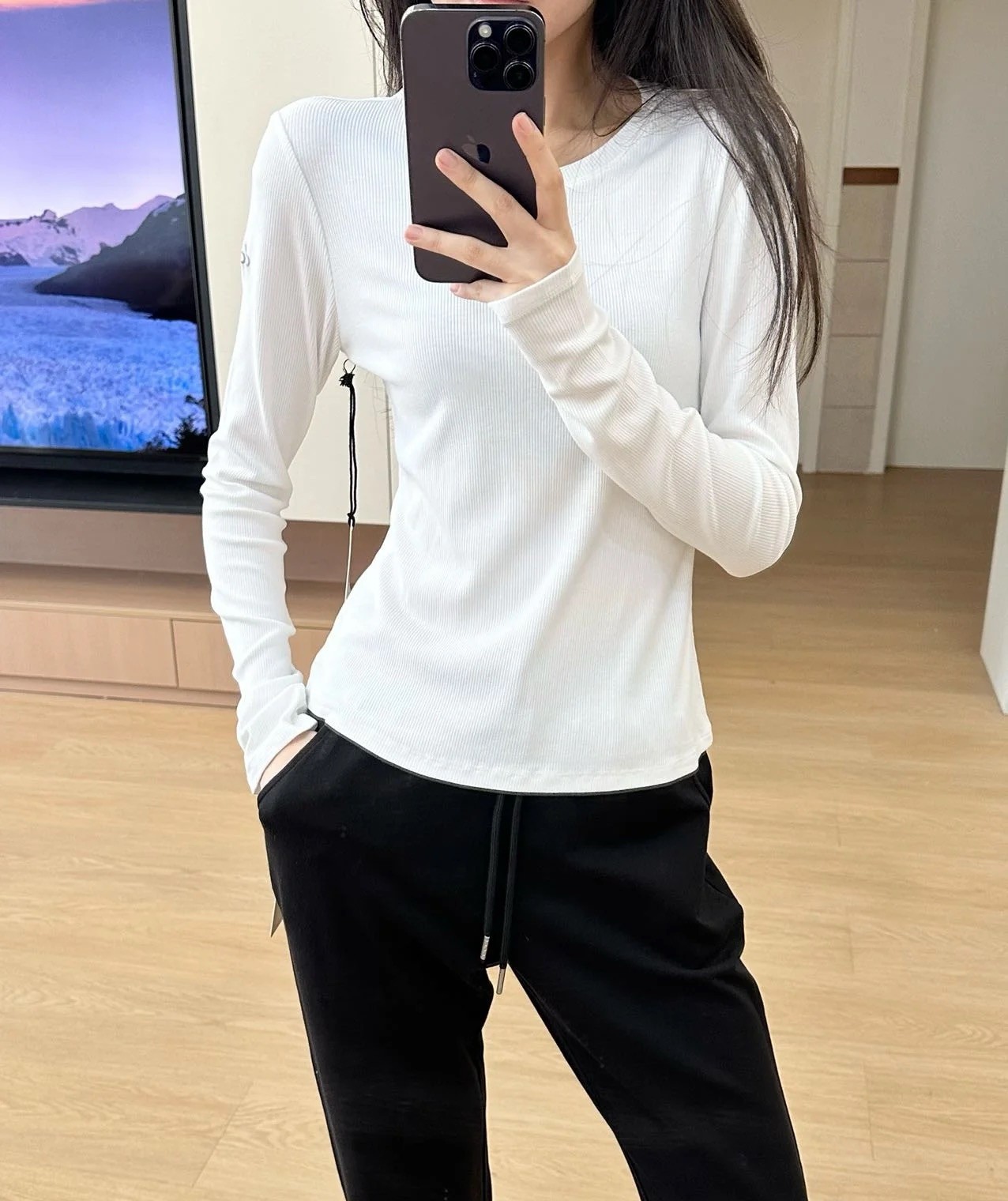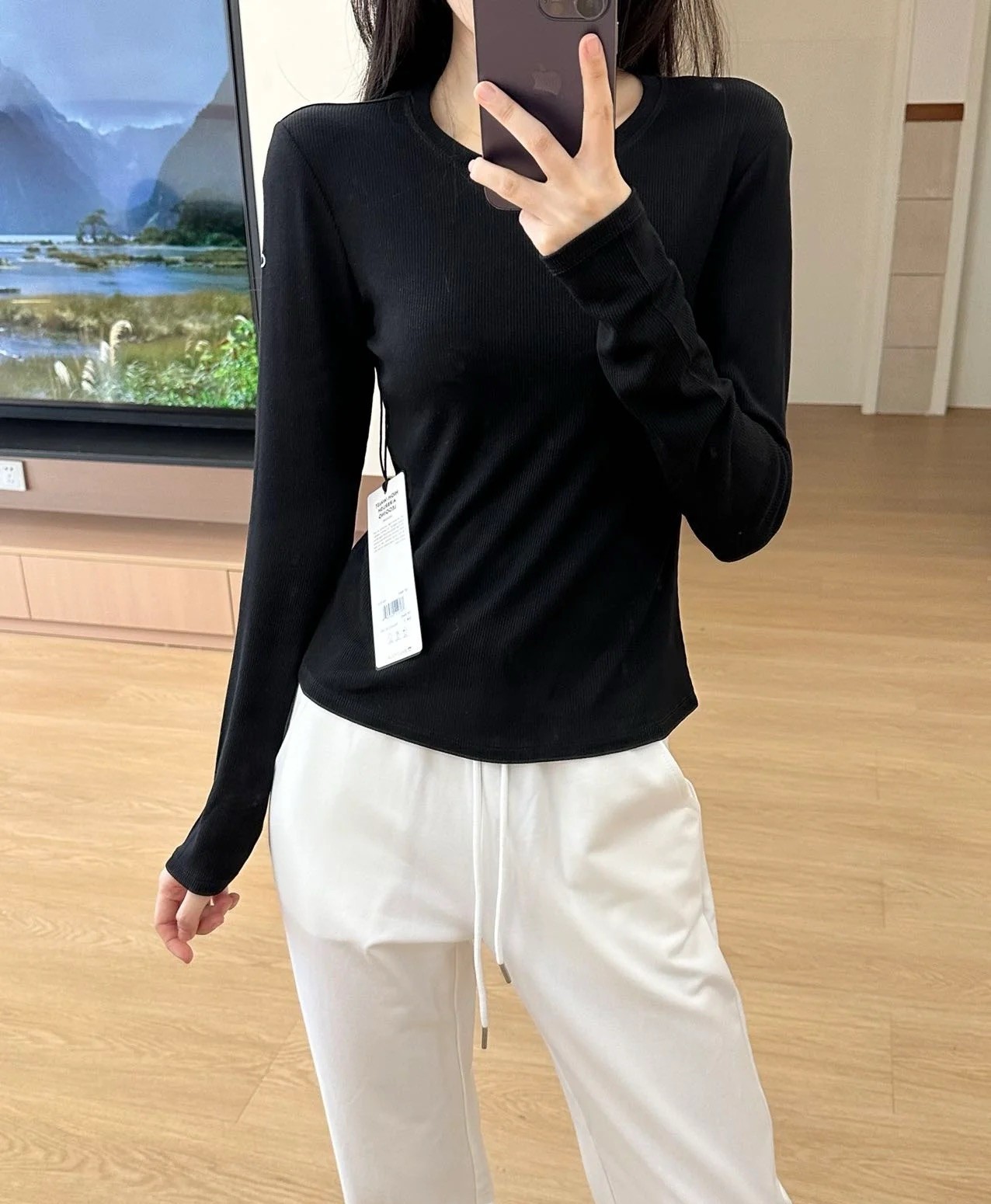 2025Al レディース 5 色ボトムシャツ夏の新超弾性リブ長袖 Tシャツヨガ痩身ラウンドネックシャツ
