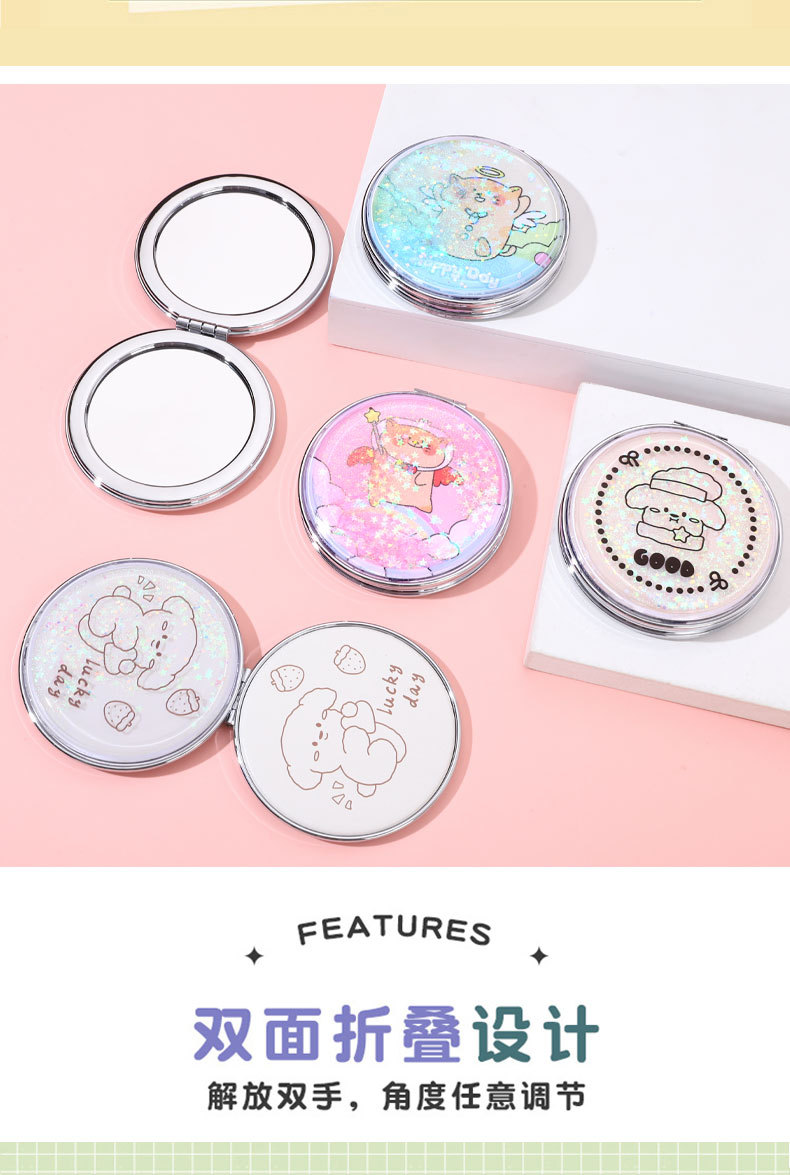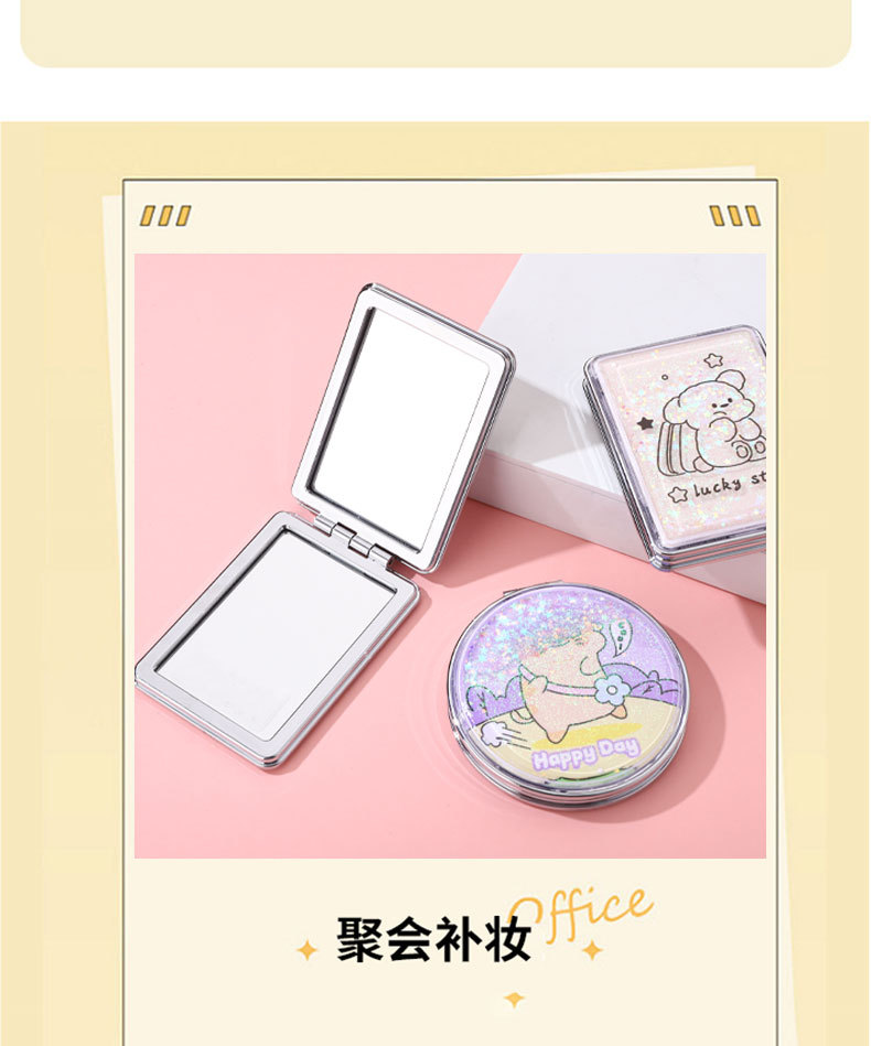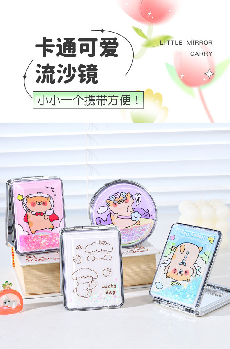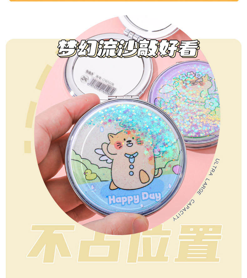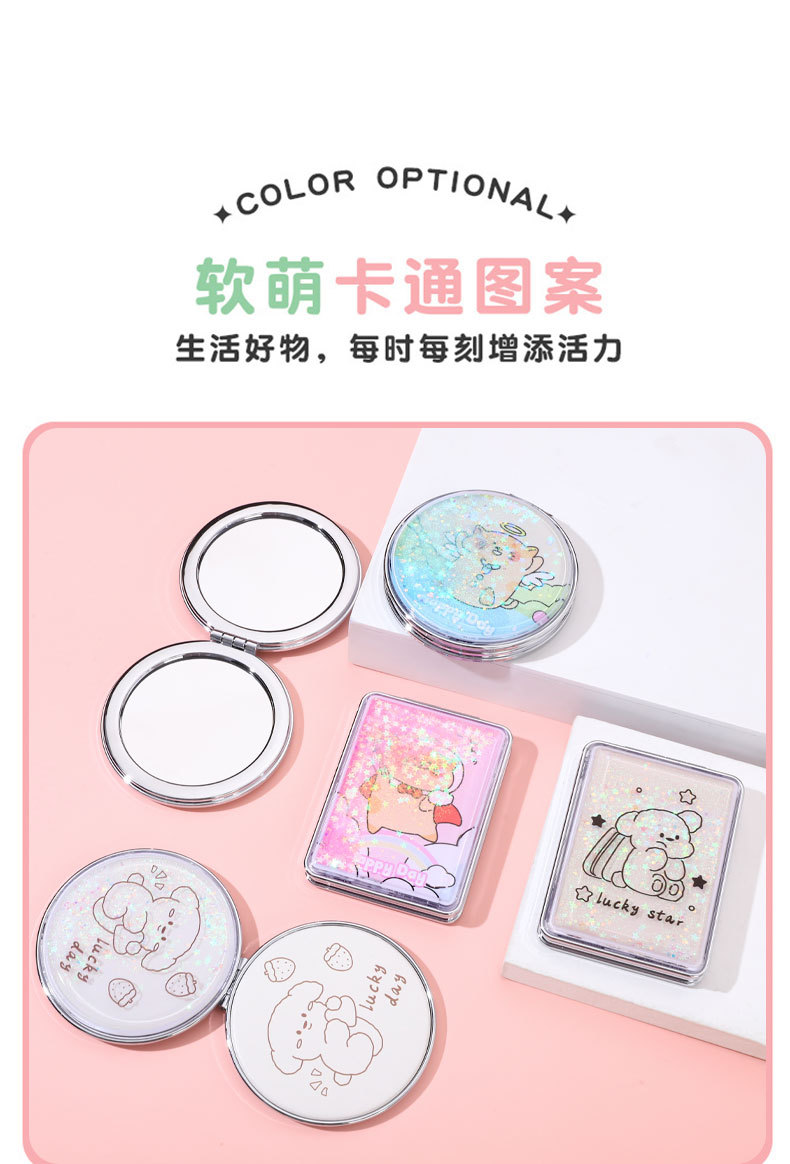 漫画のスパンコール流砂両面鏡アクリルpu折り畳み化粧鏡学生かわいい携帯化粧鏡