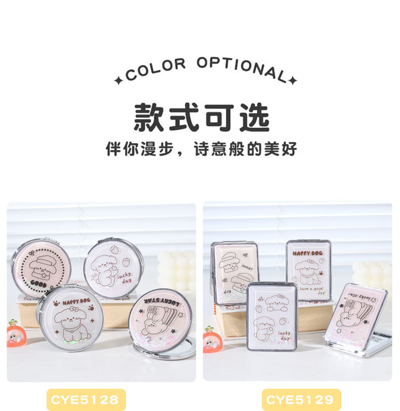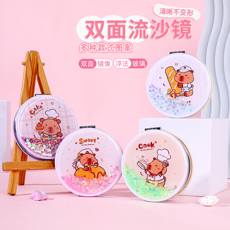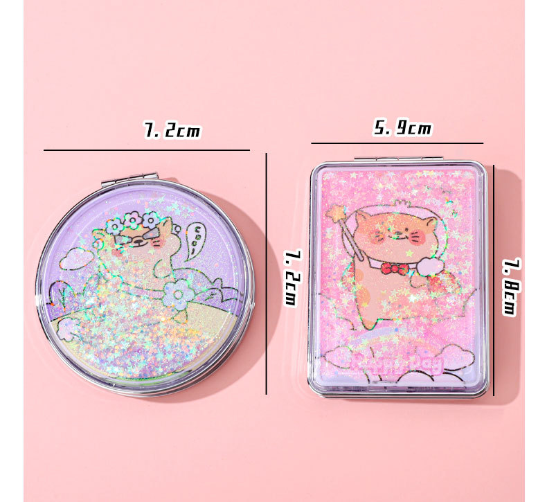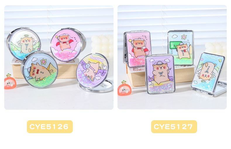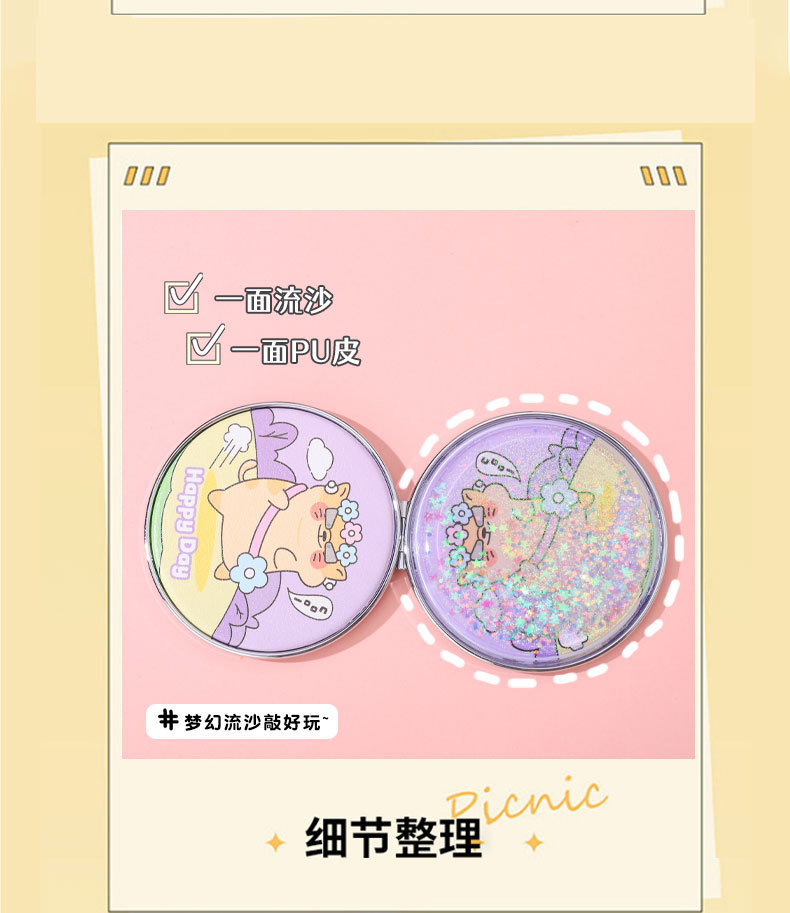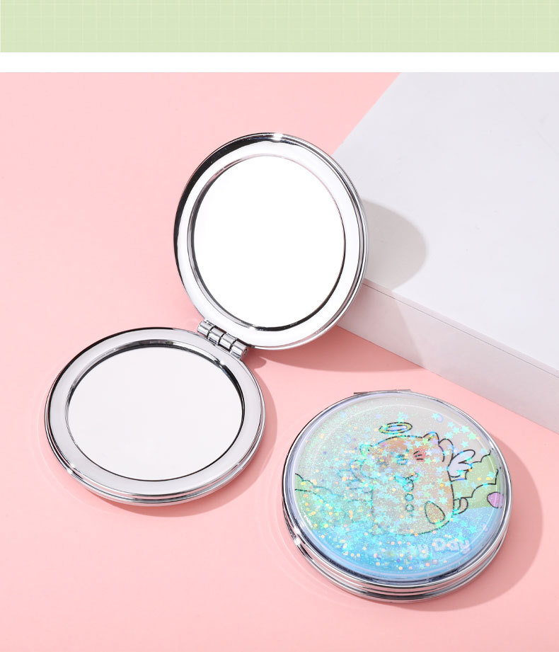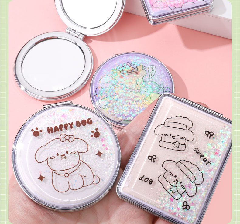 漫画のスパンコール流砂両面鏡アクリルpu折り畳み化粧鏡学生かわいい携帯化粧鏡