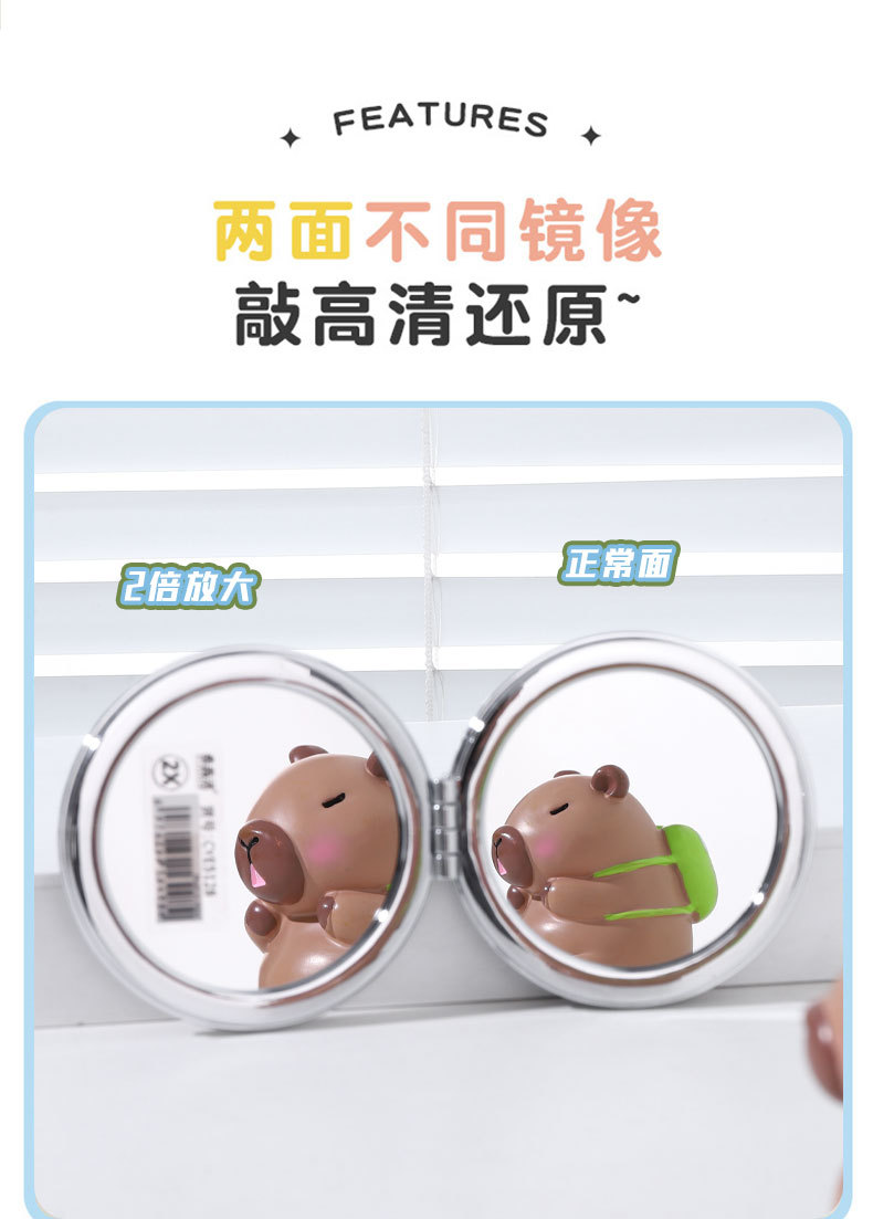 新型ソフト萌えカピバラのぬいぐるみの化粧鏡は、高精細で変形しない両面鏡の折り畳み鏡です。