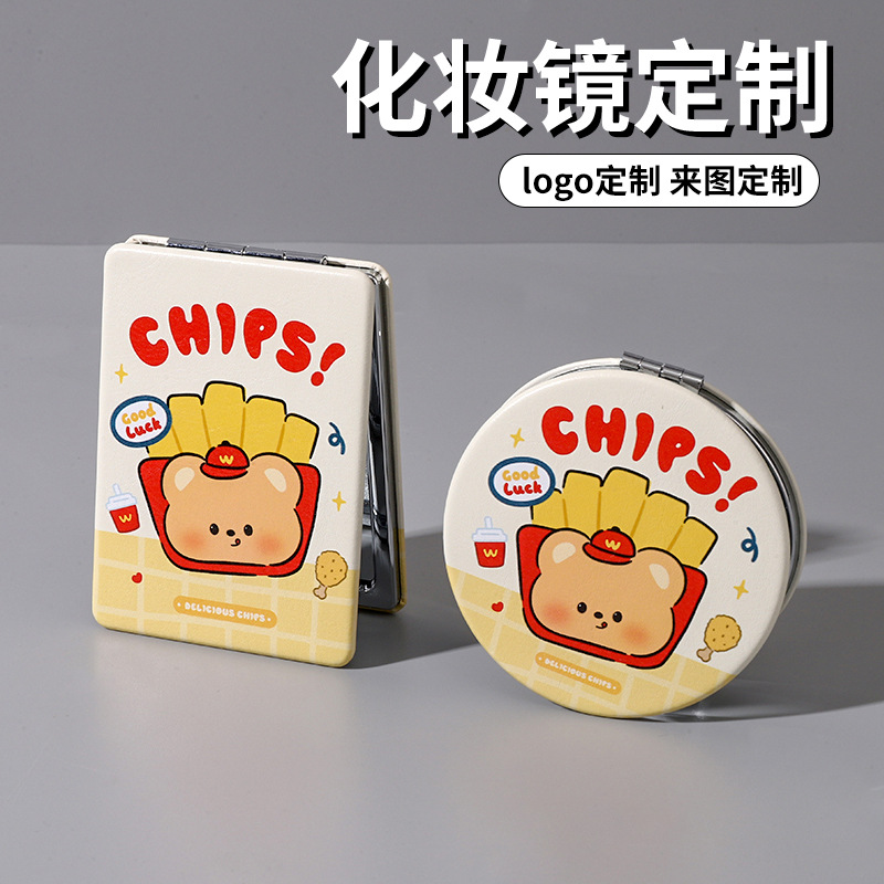定制折叠双面镜随身镜长方形圆形盒装小镜子来图定制logo定制镜子