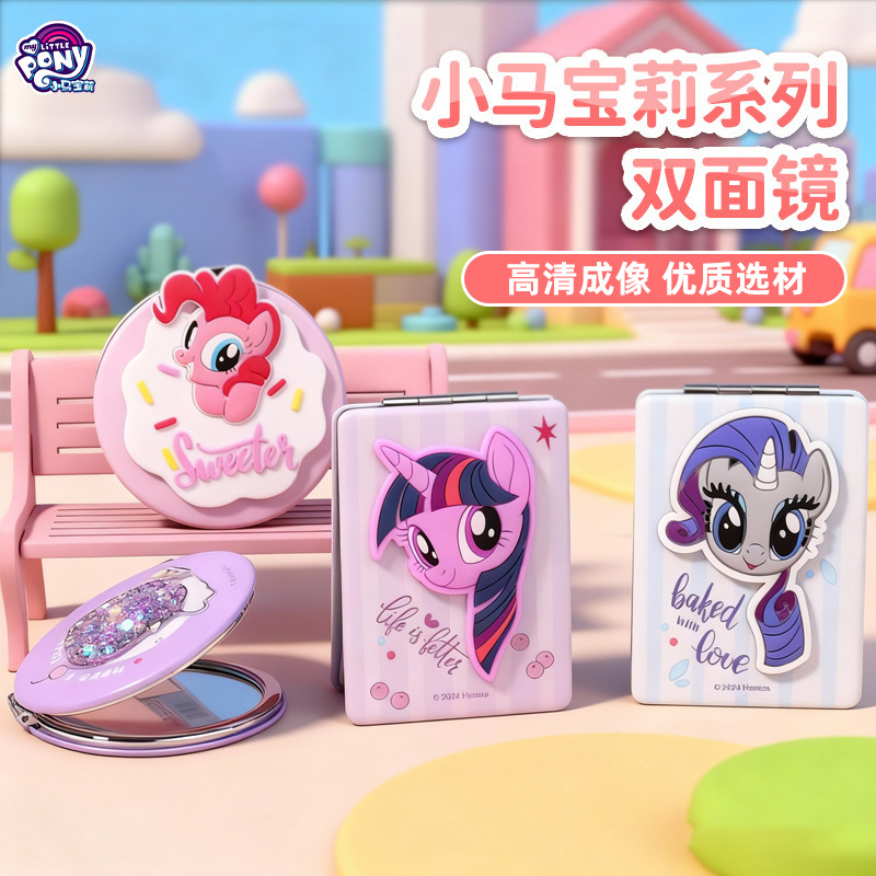 正版小马宝莉折叠小镜子紫悦碧琪化妆双面镜可爱公仔流沙镜子厂家