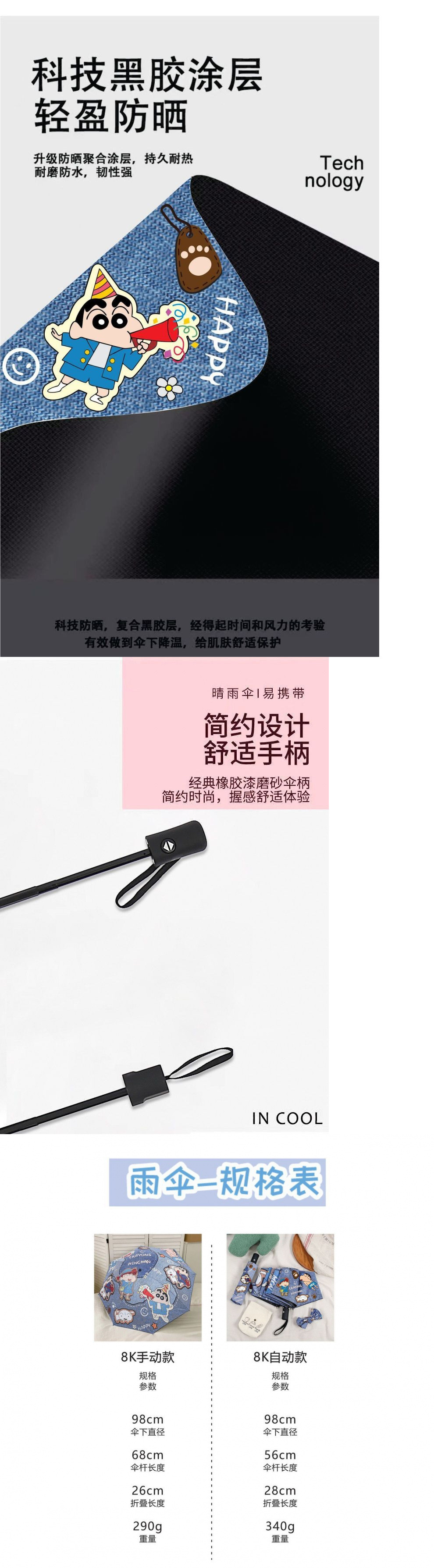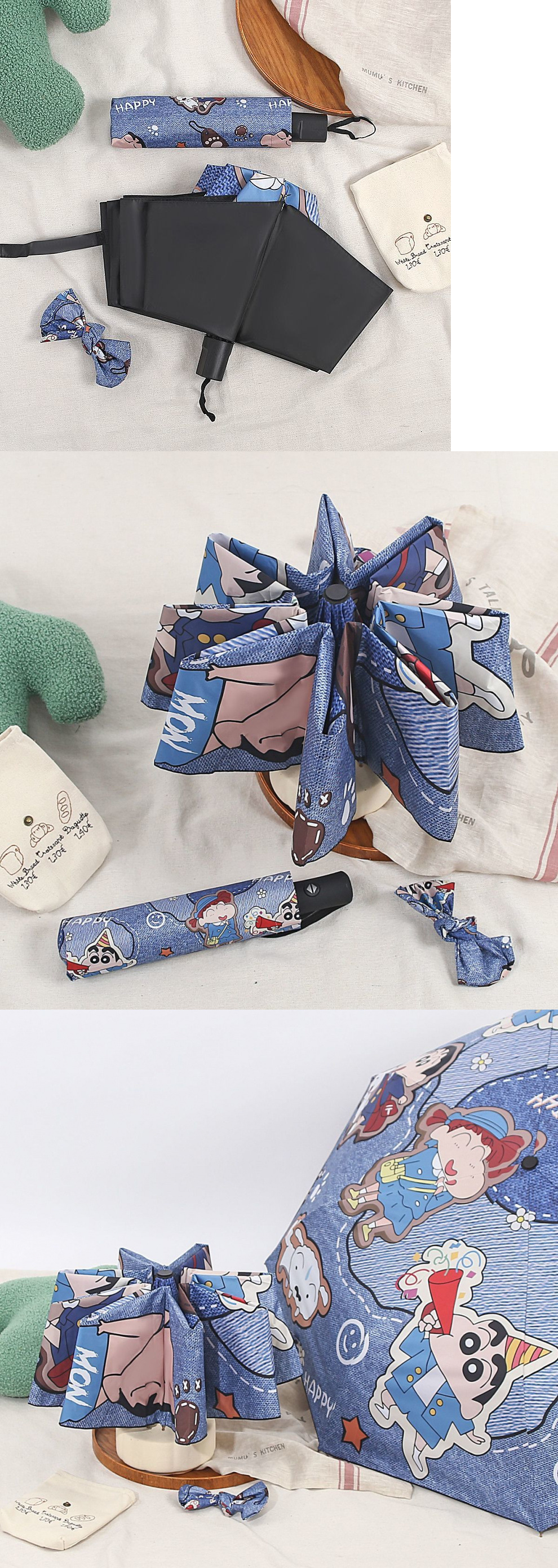 デニムクレヨンしんちゃん全自動折りたたみ傘学生両用晴雨日傘実用防紫外線日除け
