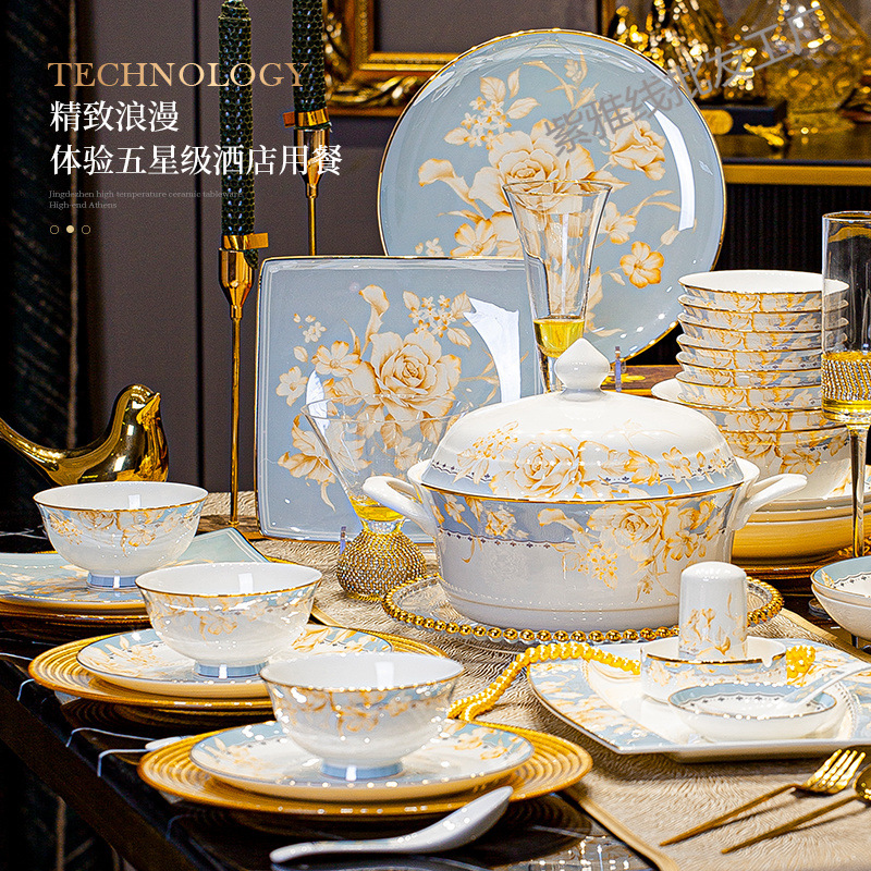 新しいセラミック家庭用食器、食器、磁器セット、軽くて豪華な新築祝いの組み合わせ、実用的で耐久性のある完全なセット