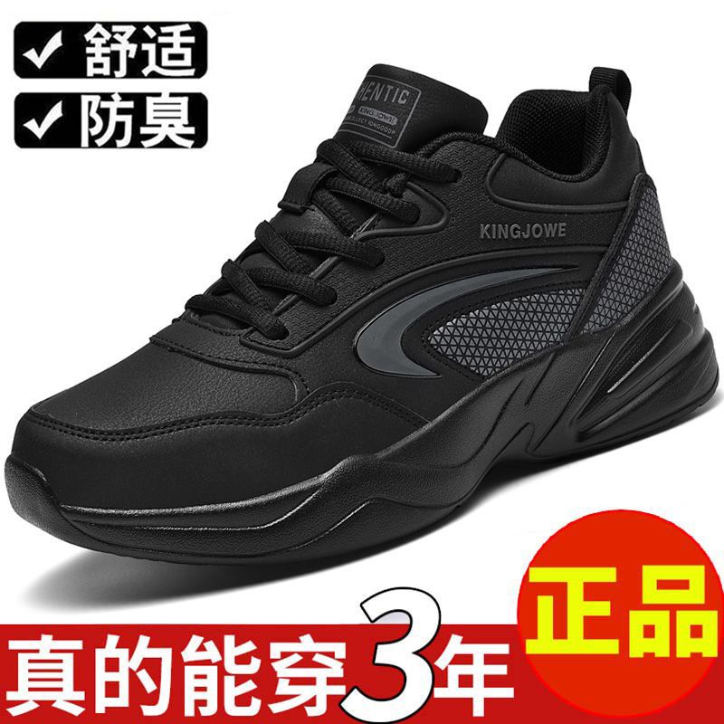 品牌运动鞋男鞋秋冬新款软底耐磨休闲鞋黑色皮面防水防臭跑步鞋男