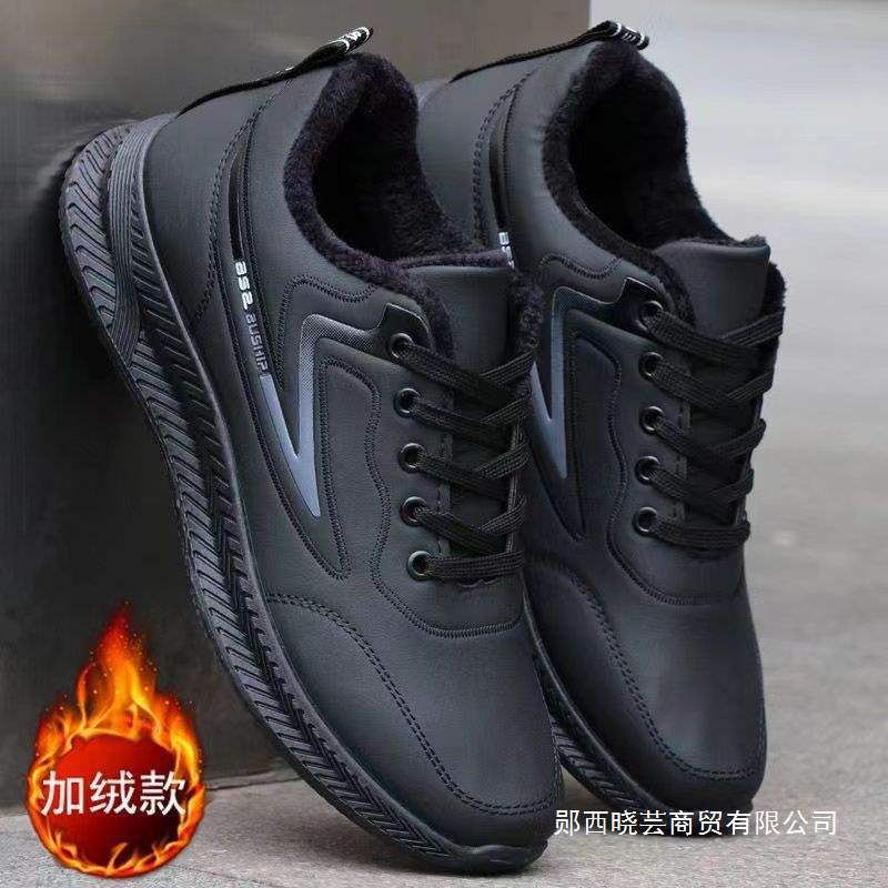 四季皮面防水运动鞋百搭青年跑步鞋防滑情侣休闲鞋子秋冬加绒男鞋