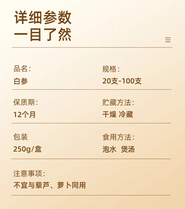 吉林长白山人参生晒参250g盒装整枝原皮参泡酒煲汤送礼之选白全须