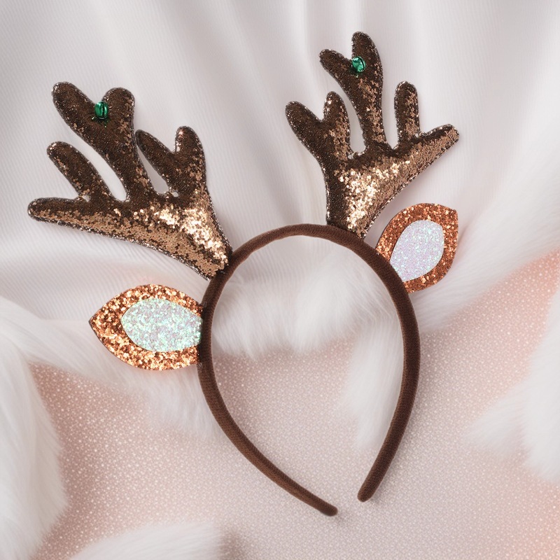 跨境圣诞节亮片鹿角装饰发箍冬日毛绒节庆聚会圣诞主题派对头饰