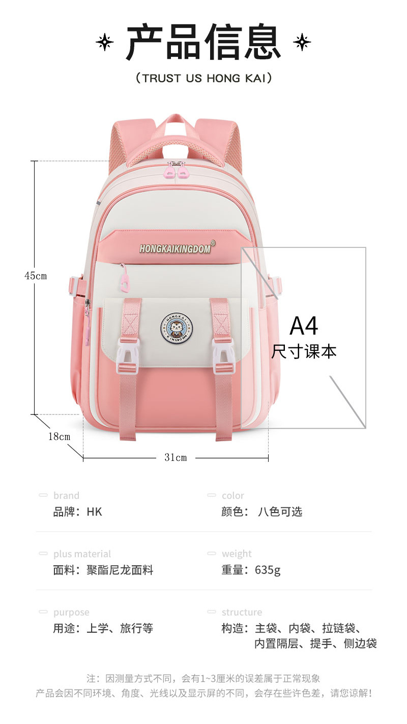 2025超轻便耐脏书包初中生女孩防泼水尼龙牛津布超轻护脊双肩背包