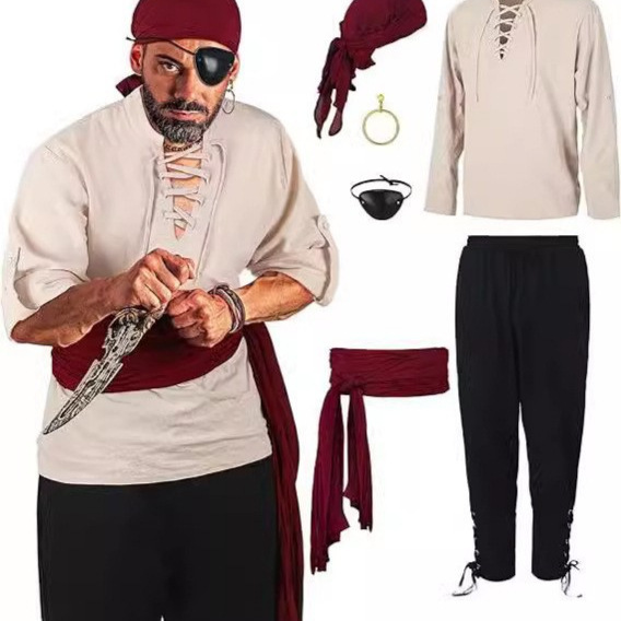 2025アマゾンハロウィーン海賊服装中世文芸復興亜麻海賊スカーフとベルトアクセサリー