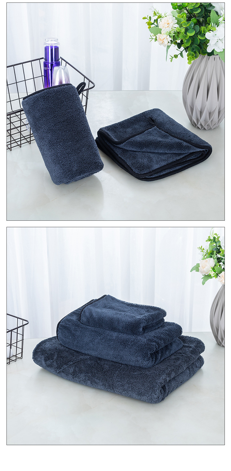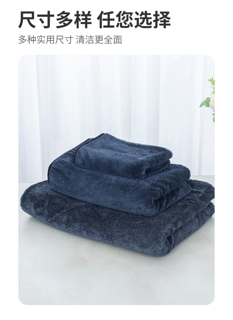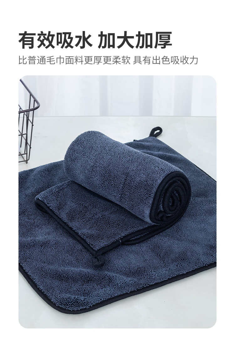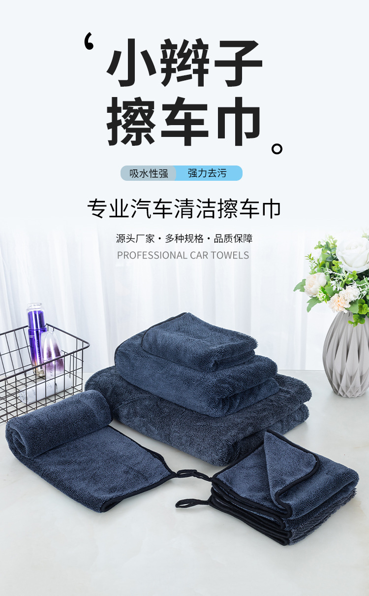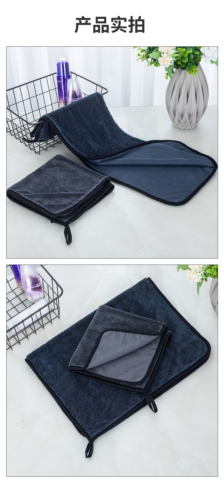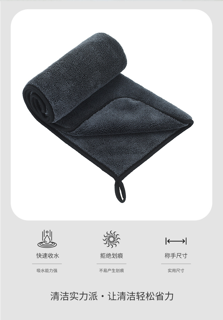 お下げの吸水タオルの両面に水を入れて跡を残さずに車のタオルを洗う車の清潔な雑巾で車のタオルを拭く