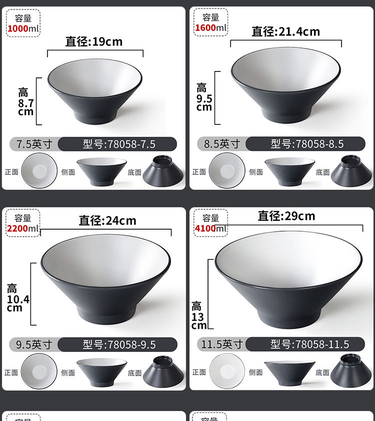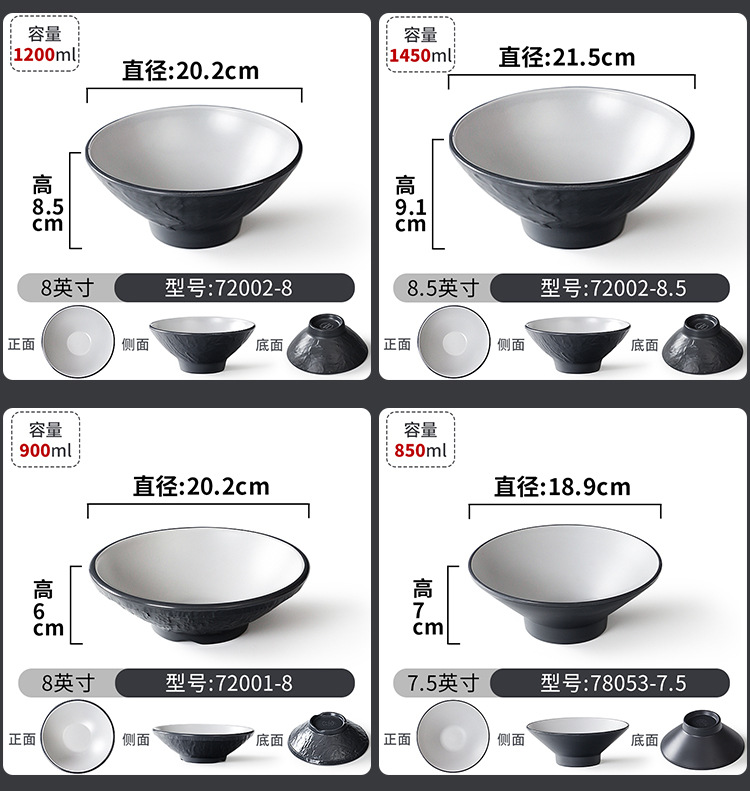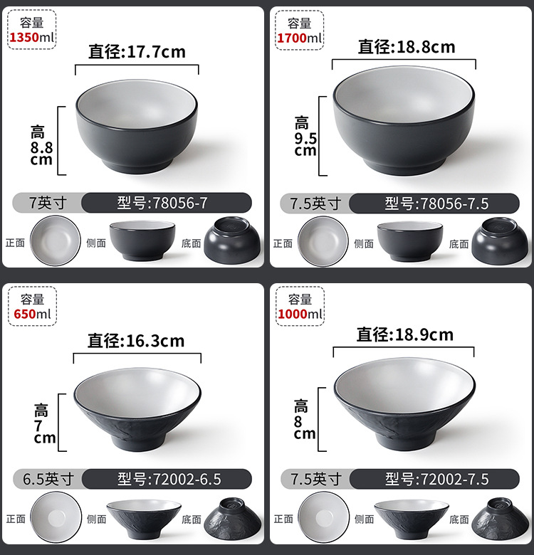 テーブルメラミン食器ヌードルボウル業務用模造磁器スパイシーランプヌードルレストラン専用ボウルスープパウダースープヌードルライスヌードル大スープボウル