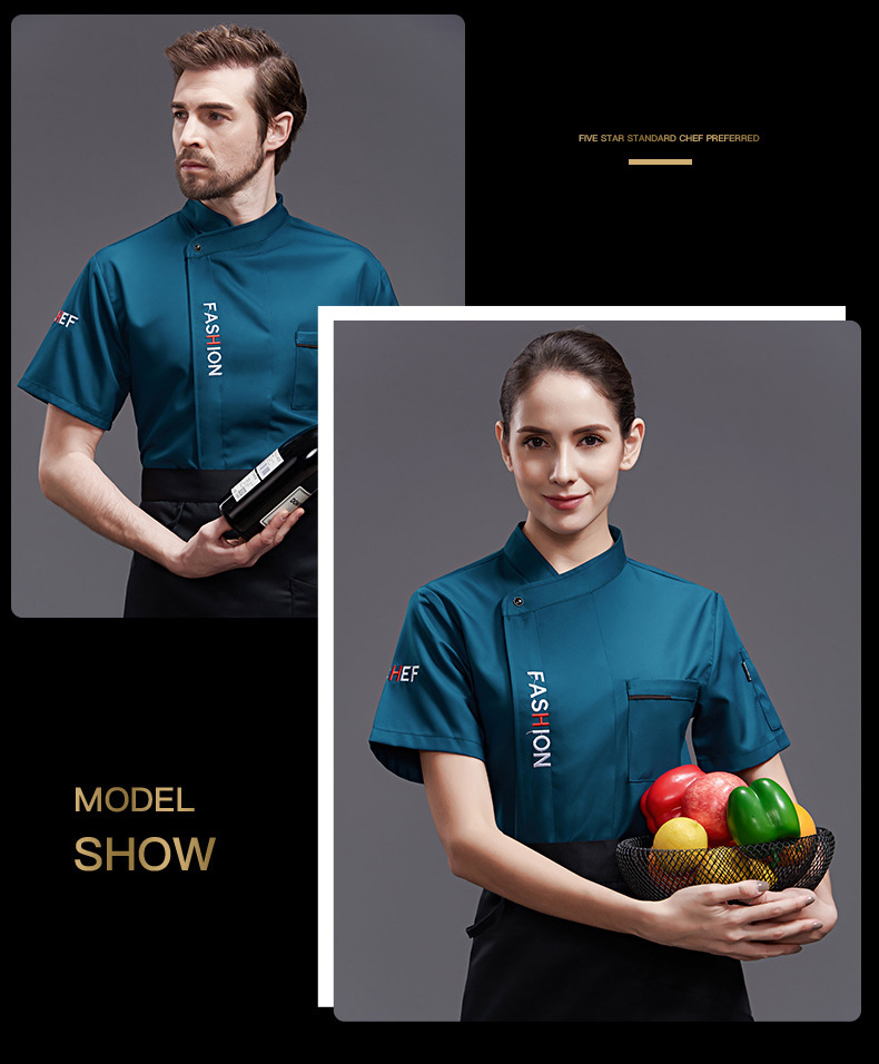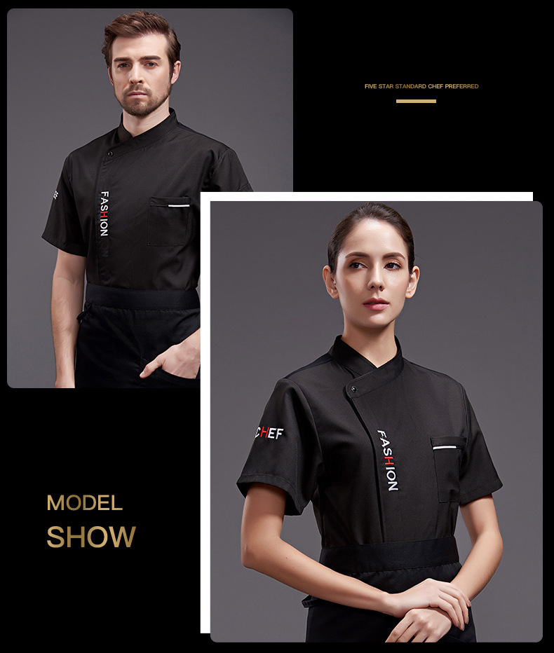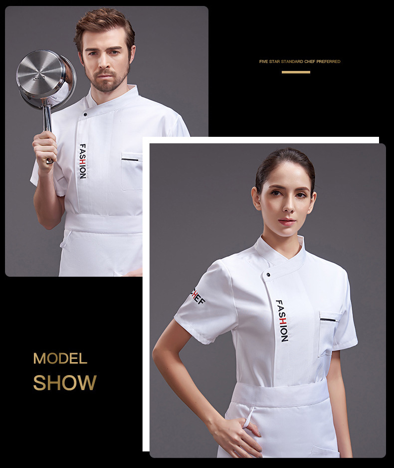 ケータリングシェフ作業服男性と女性のためのハイエンド半袖ホテルキッチンレストラン通気性メッシュシェフ服長袖夏薄手