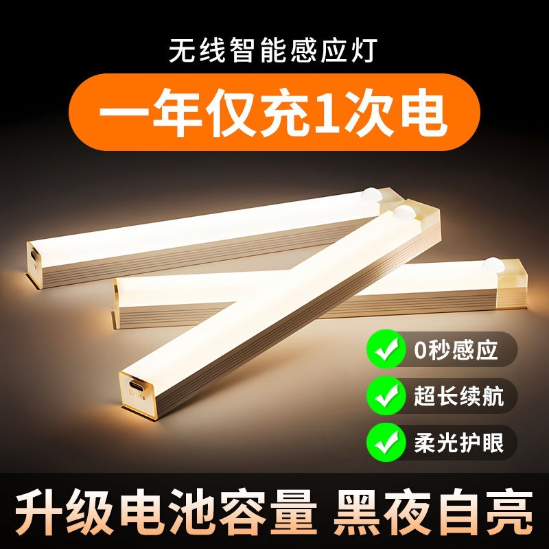 感应灯全自动充电式带长条衣柜鞋柜无线自粘厨房LED磁吸式橱柜灯